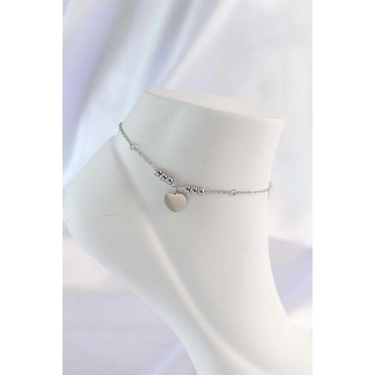 316L Çelik Gümüş Renk Zirkon Taş Detay Kalpli Halhal