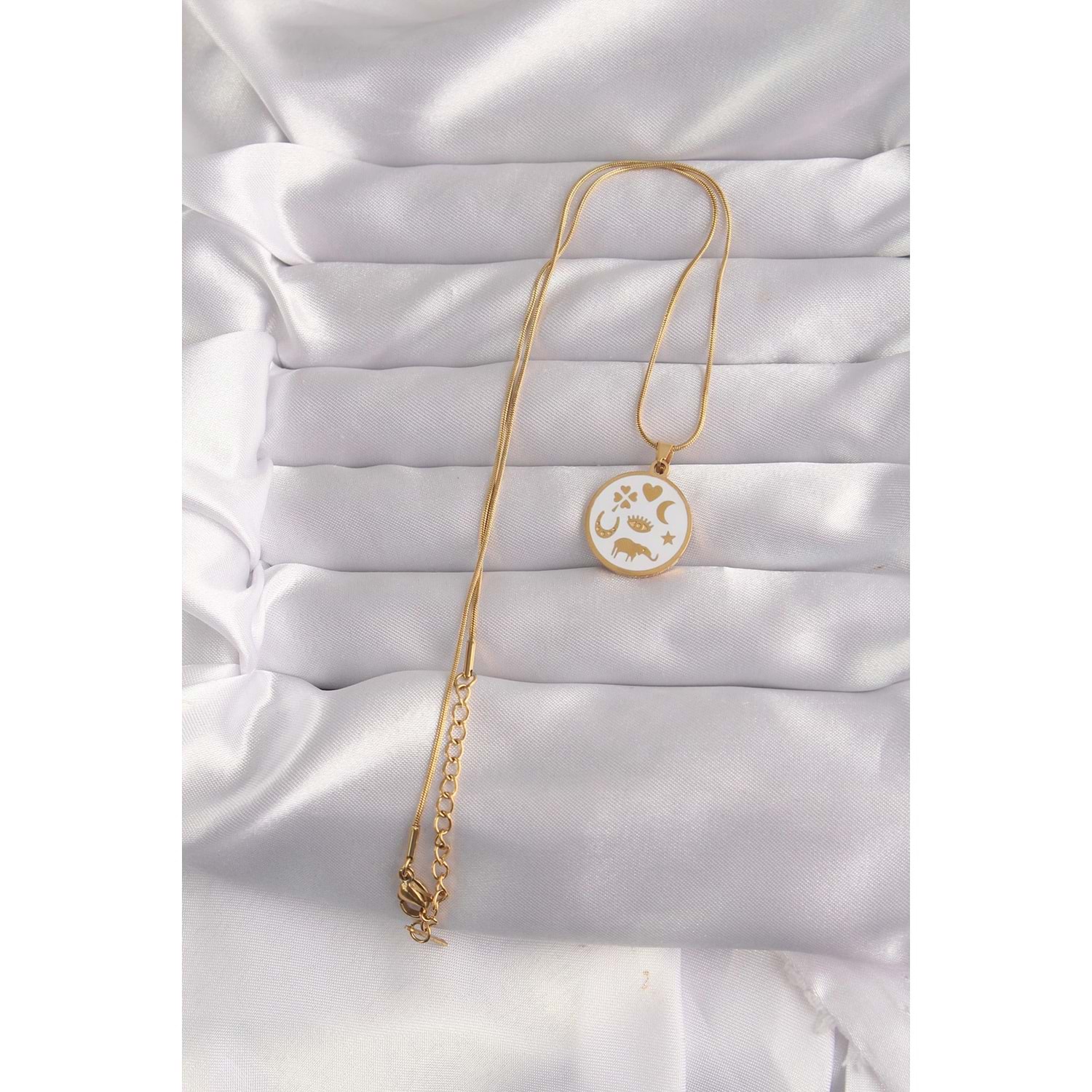 316L Çelik Gold Renk Beyaz Mineli Karışık Figürlü Tarot Kolye