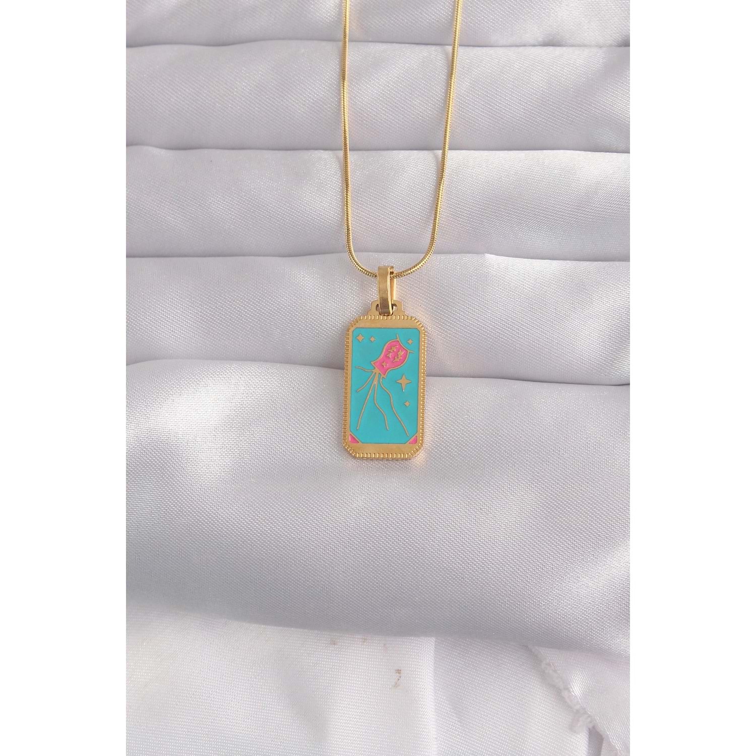 316L Çelik Gold Renk Mavi Mineli Tarot Kolye