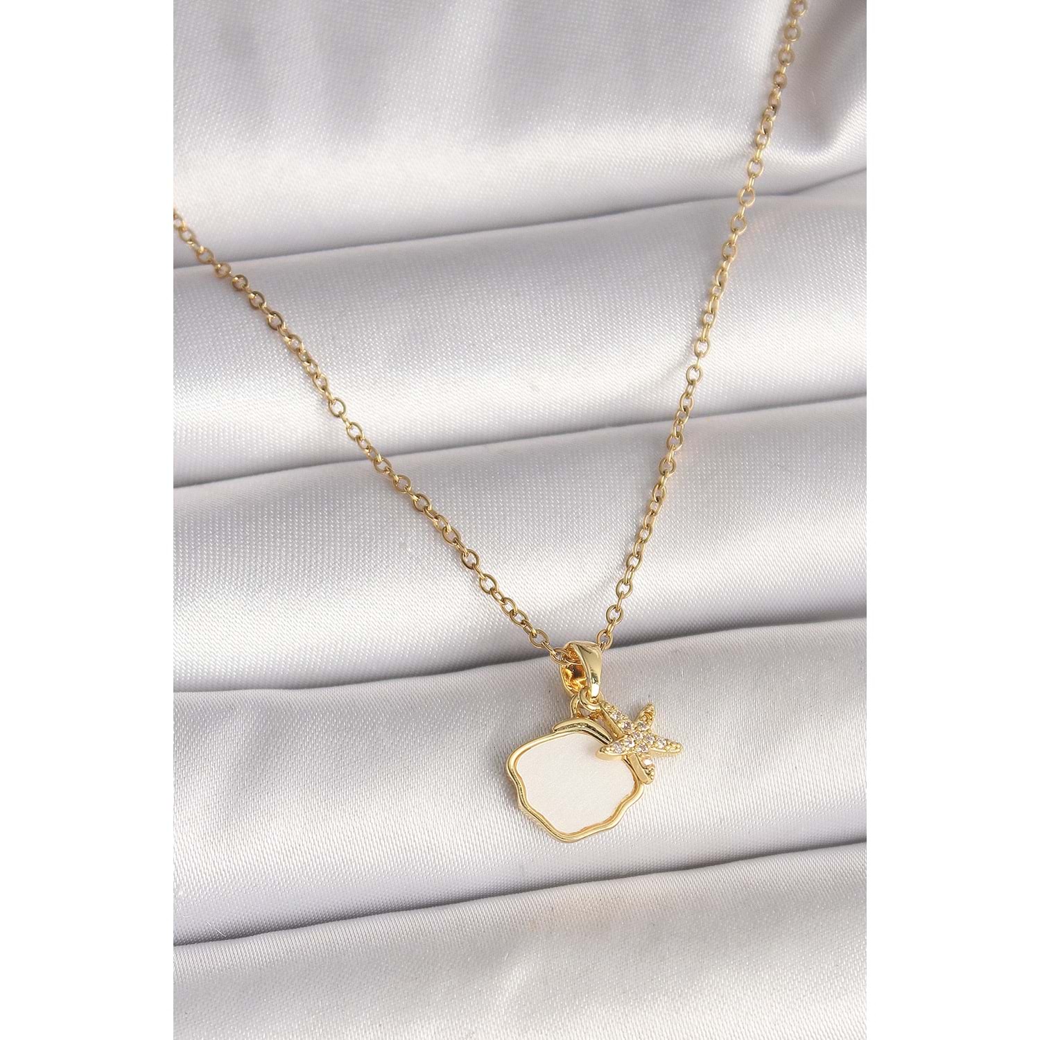 316L Çelik Gold Renk Zincir Sallantı Beyaz Mineli Deniz Kabuğu Zirkon Taşlı Deniz Yıldızı Figür Kadın Kolye