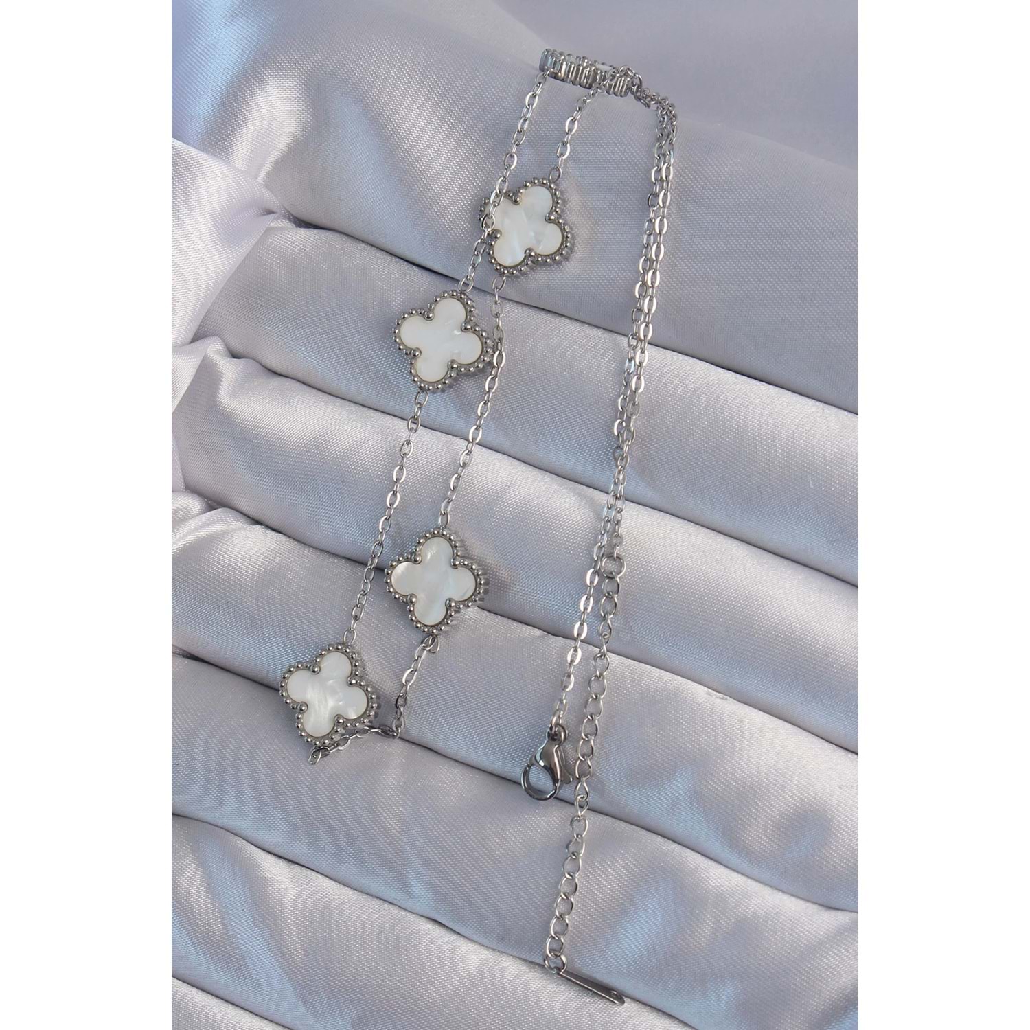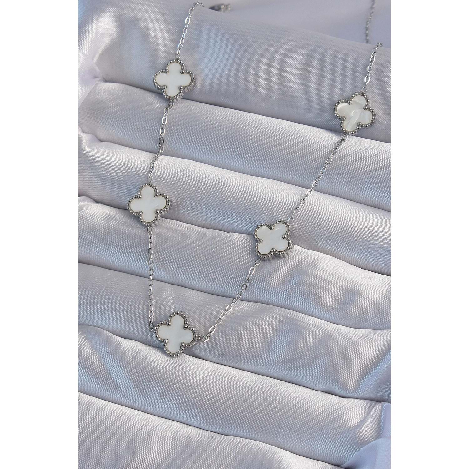 316L Çelik Gümüş Renk Beyaz Sedefli Yonca Kolye