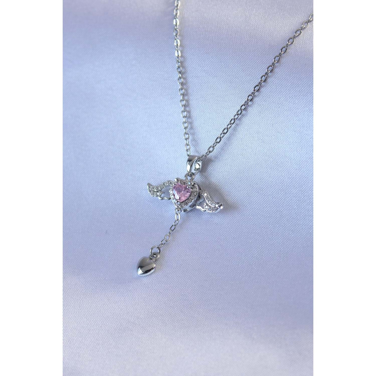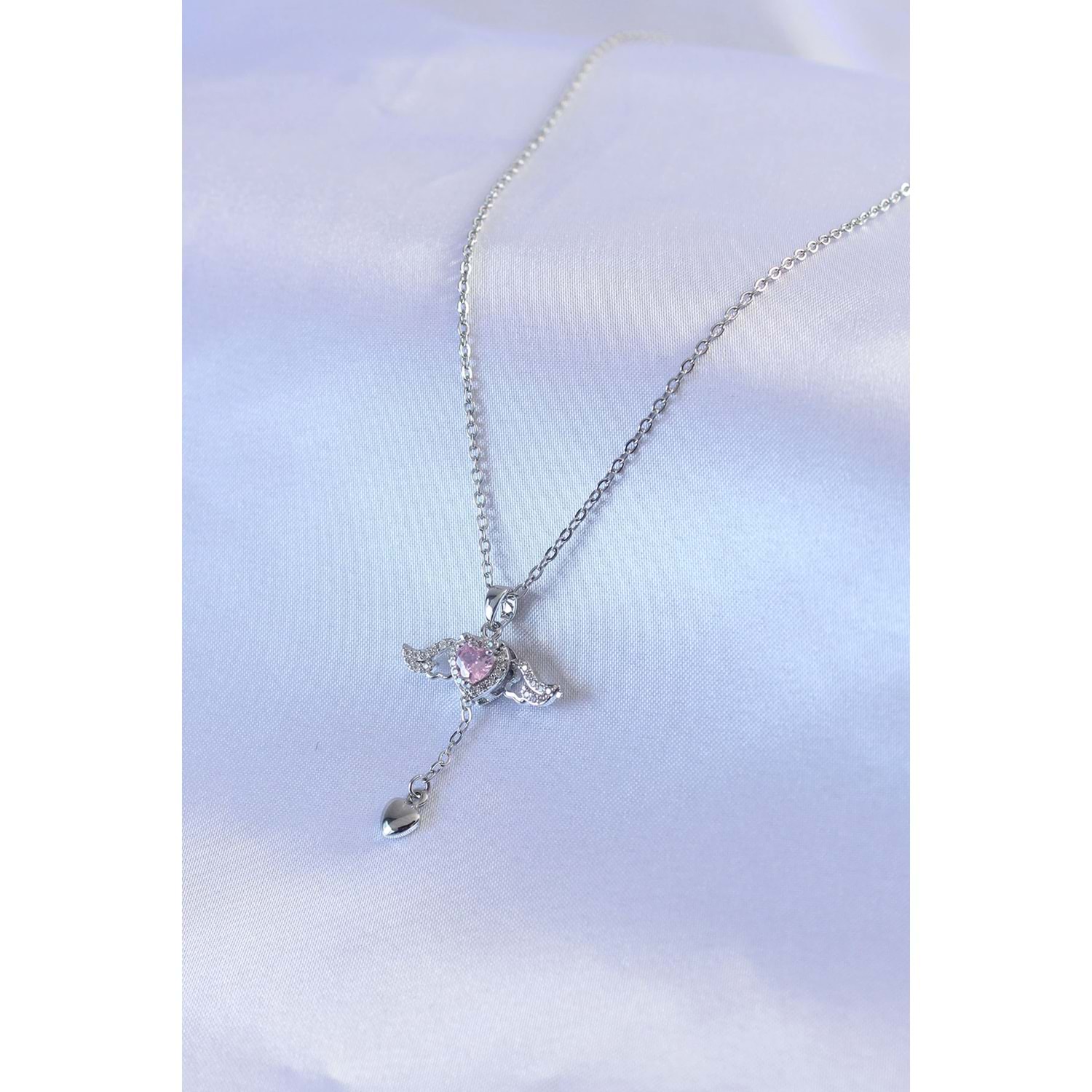 316L Çelik Gümüş Renk Kanatlı Kalp Figür Zirkon Taş Detay Kadın Kolye