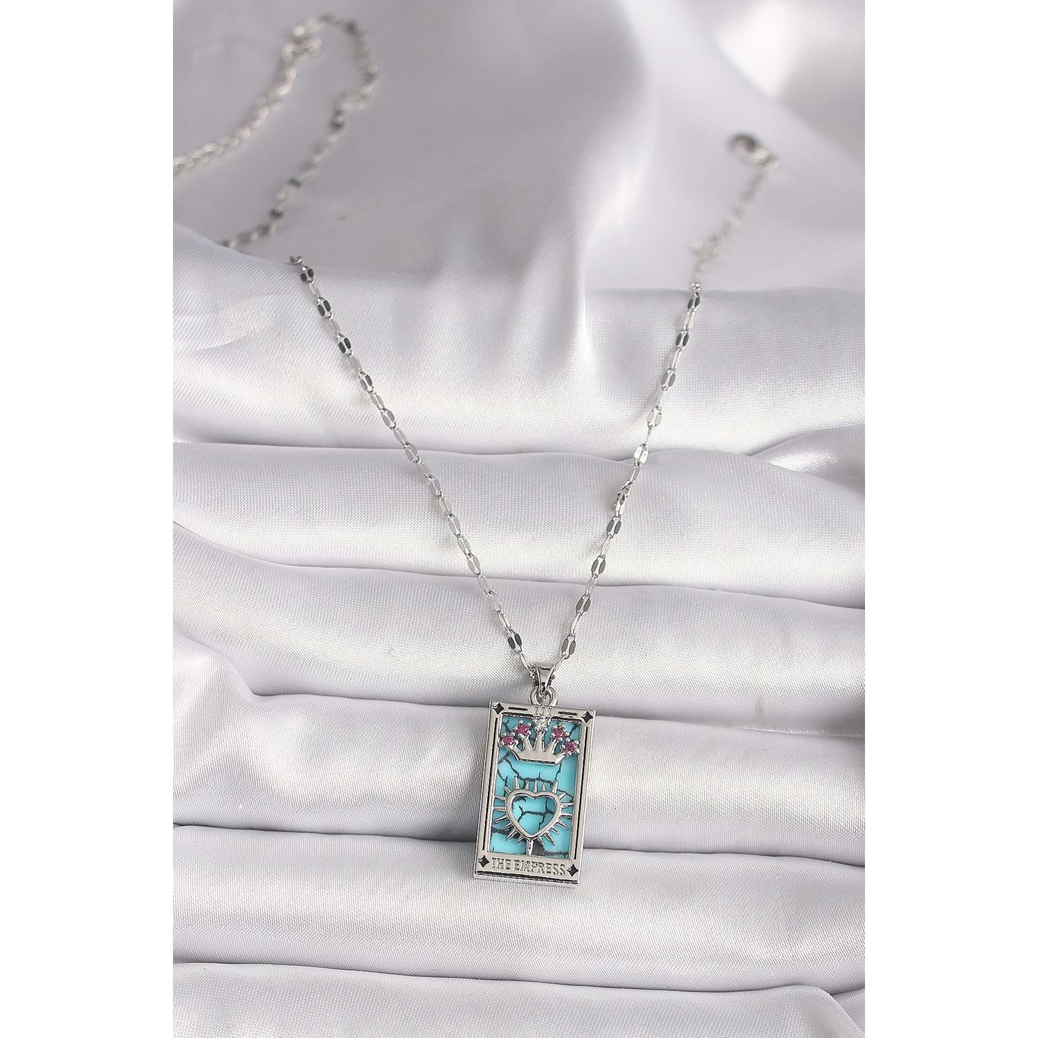 316L Çelik Gümüş Renk Pembe Zirkon Taşlı Taç Kalp Portre Model Kadın Kole