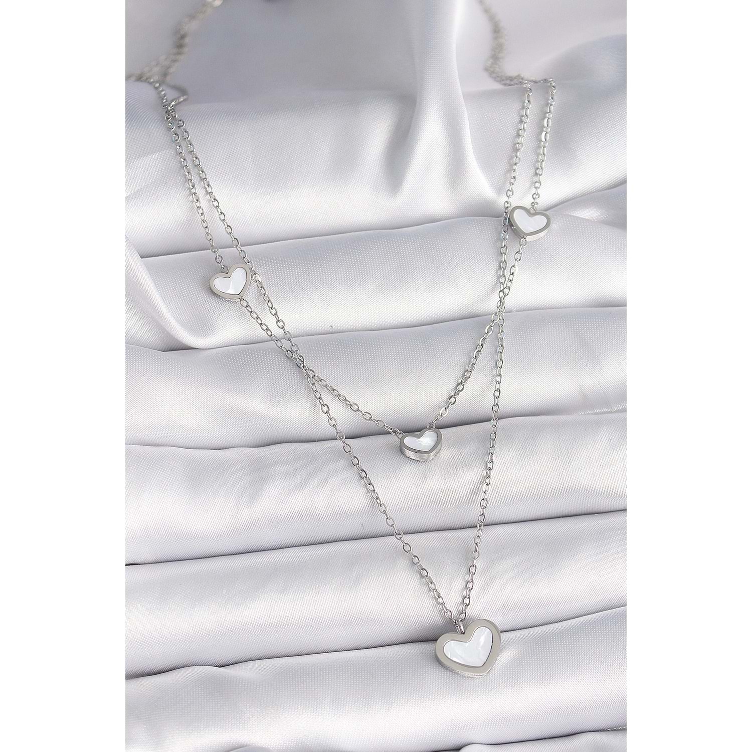 316L Çelik Gümüş Renk Zincir 2'Li Zincir Kalp Model Kadın Kolye
