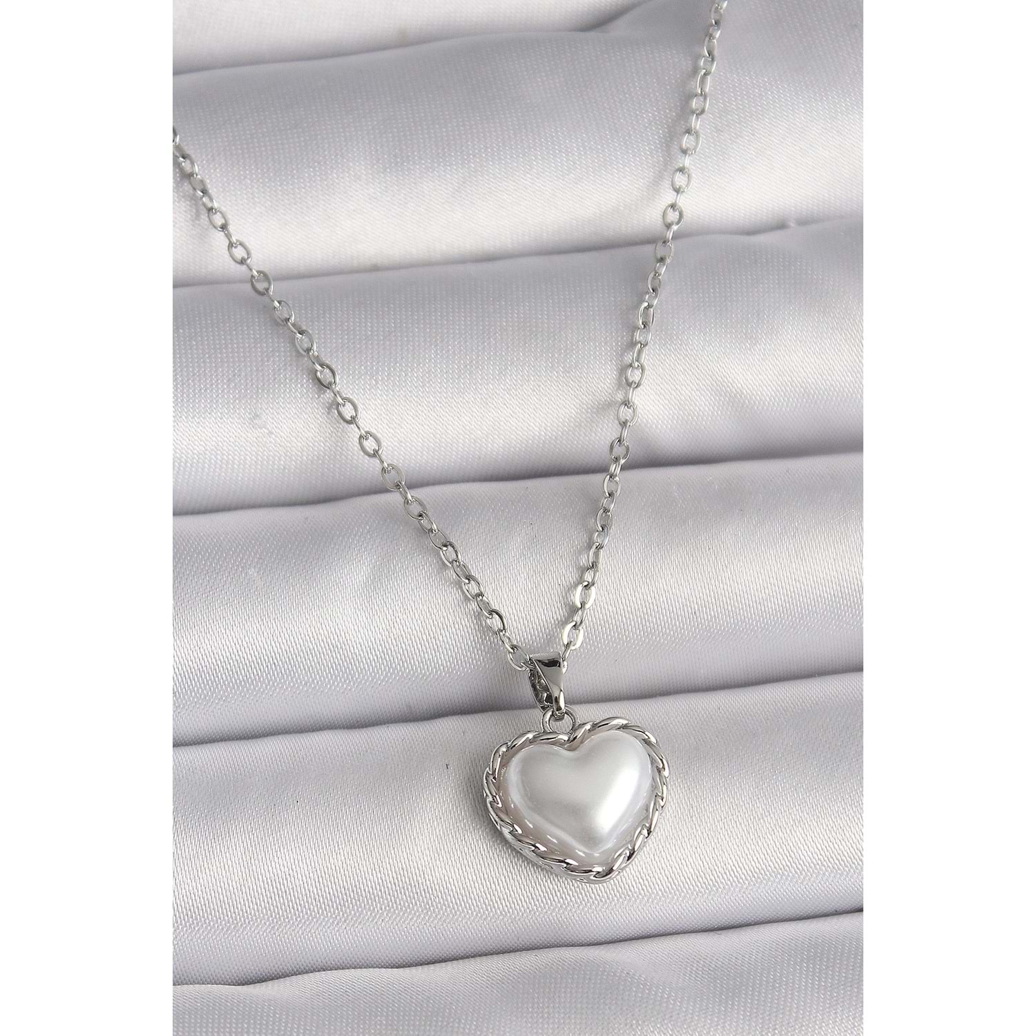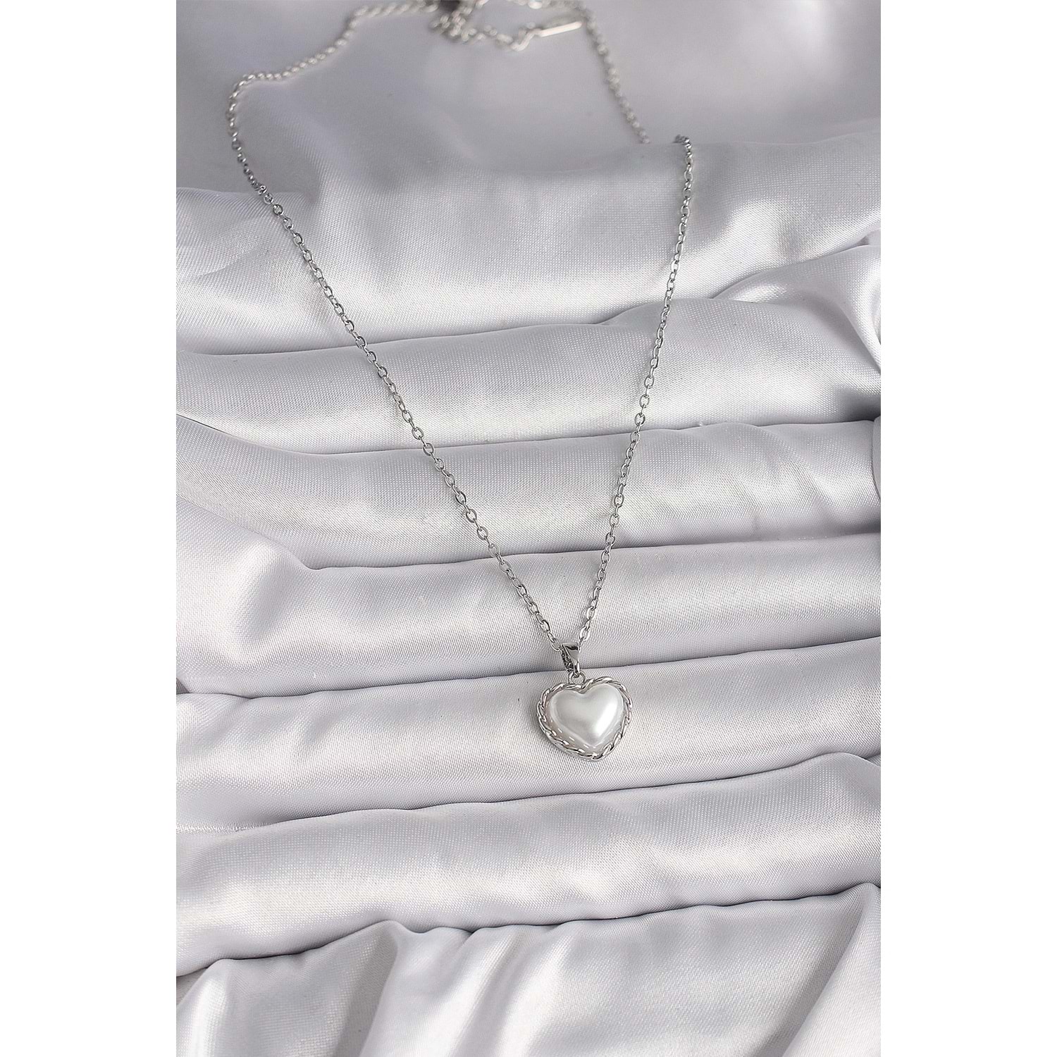 316L Çelik Gümüş Renk Zincir 3D İnci Kalp Model Kadın Kolye
