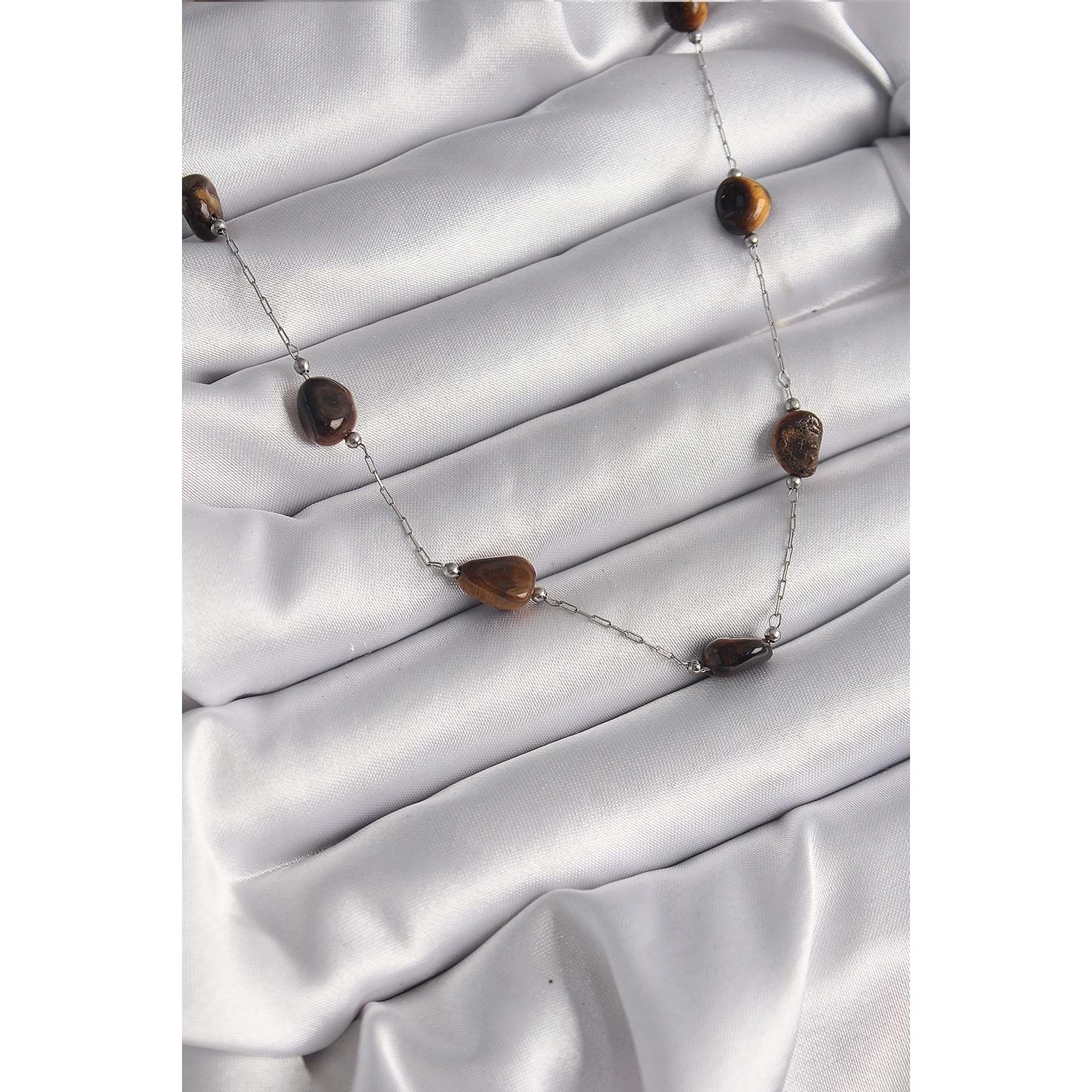 316L Çelik Gümüş Renk Zincir Kahverengi Doğaltaş Model Kadın Kolye