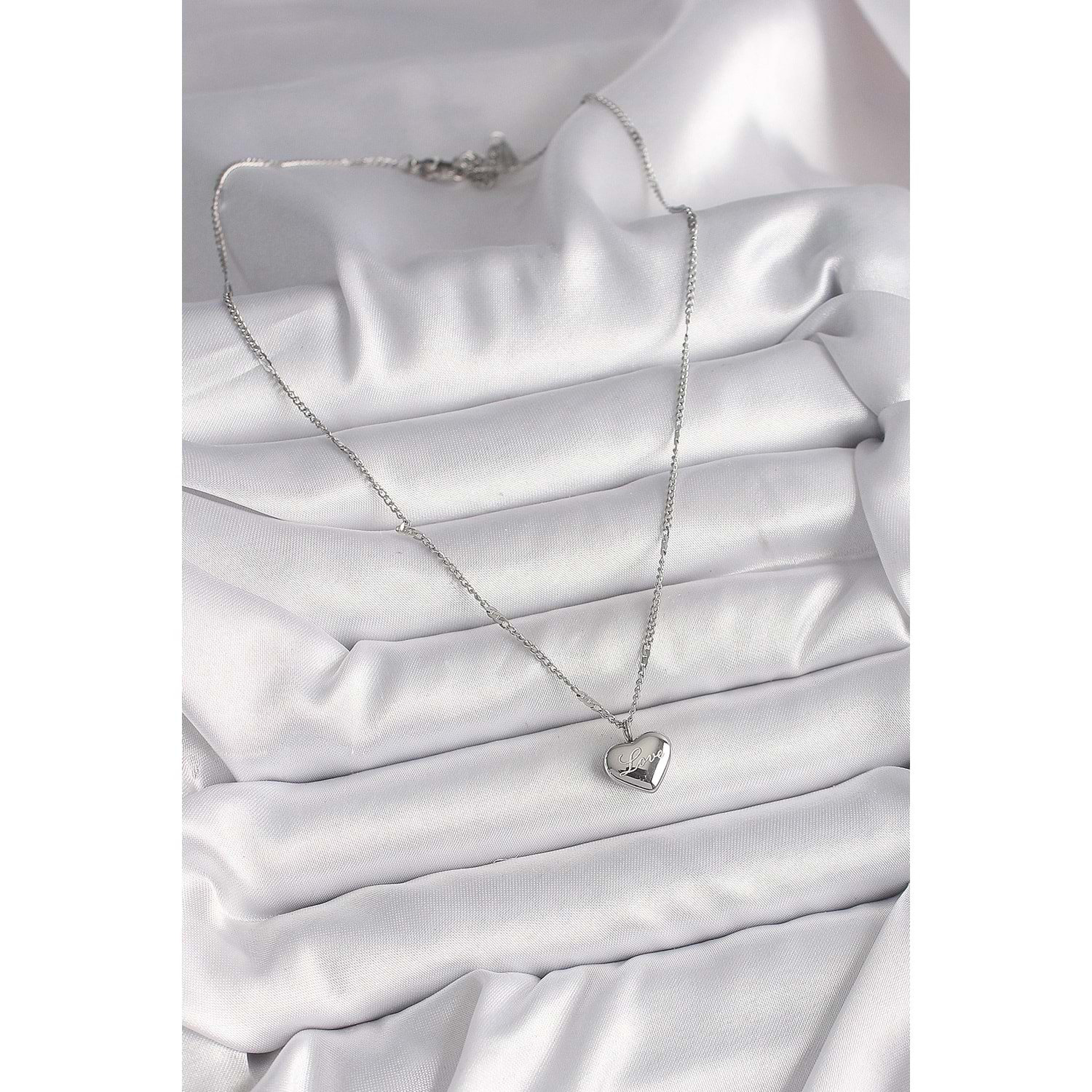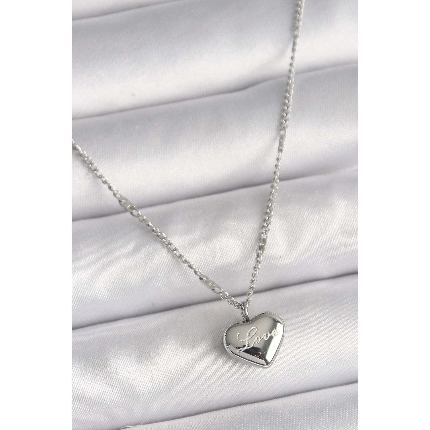 316L Çelik Gümüş Renk Zincir Love İşleme Kalp Figür Kadın Kolye