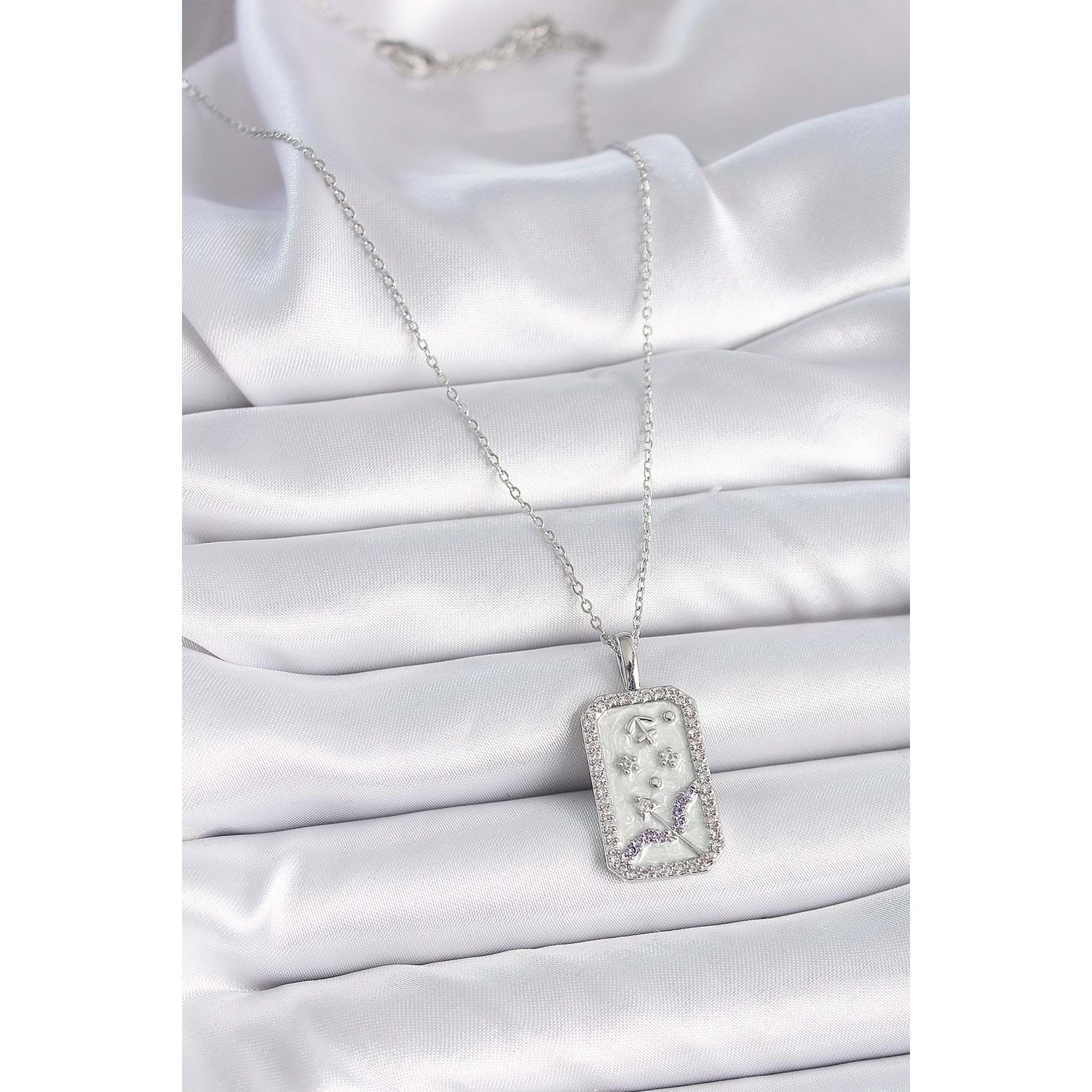 316L Çelik Gümüş Renk Zincir Yay Burcu Zirkon Taşlı Kadın Kolye