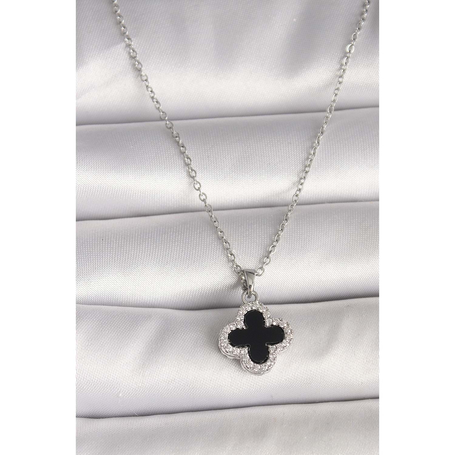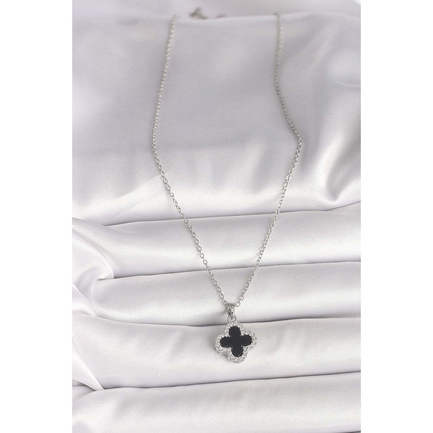 316L Çelik Gümüş Renk Zincir Zirkon Taşlı Yonca Model Kadın Kolye