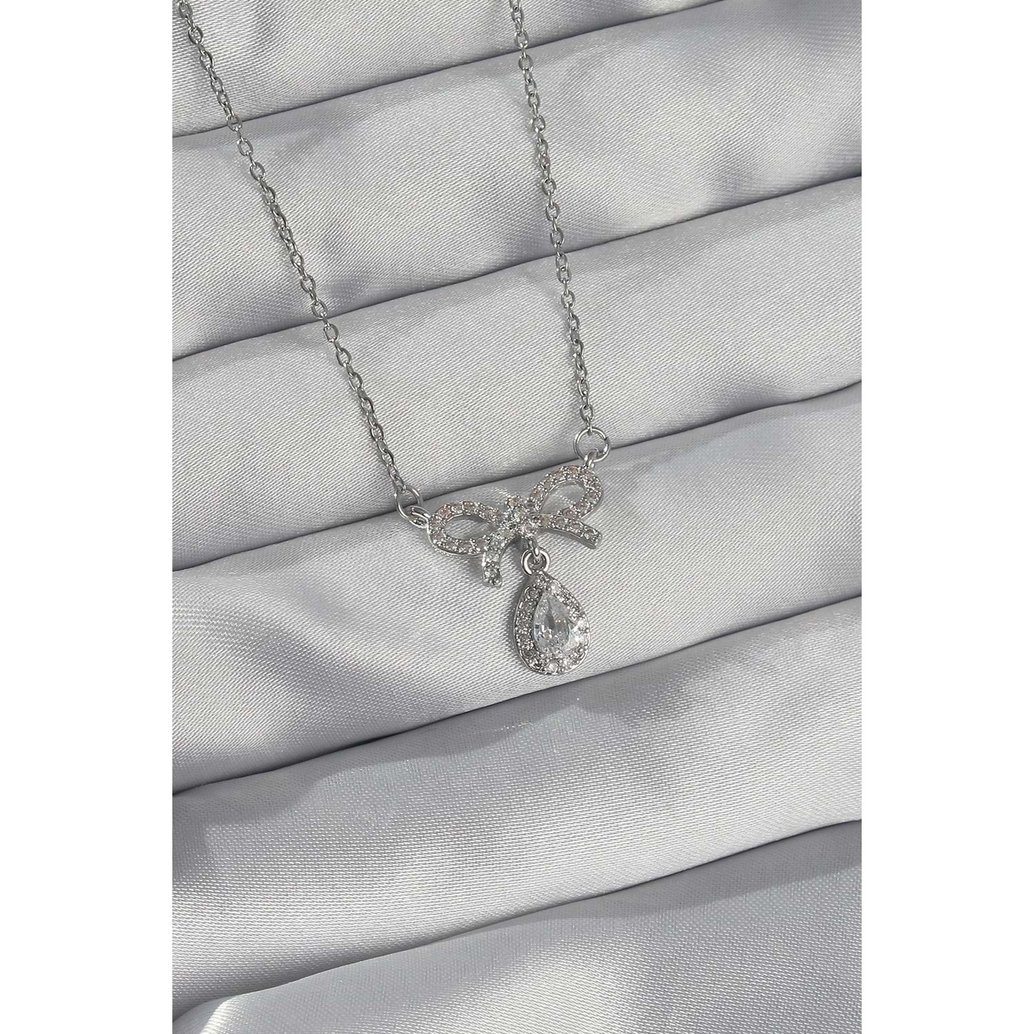 316L Çelik Gümüş Renk Fiyonk Detay Pembe Zirkon Taşlı Tektaş Kolye