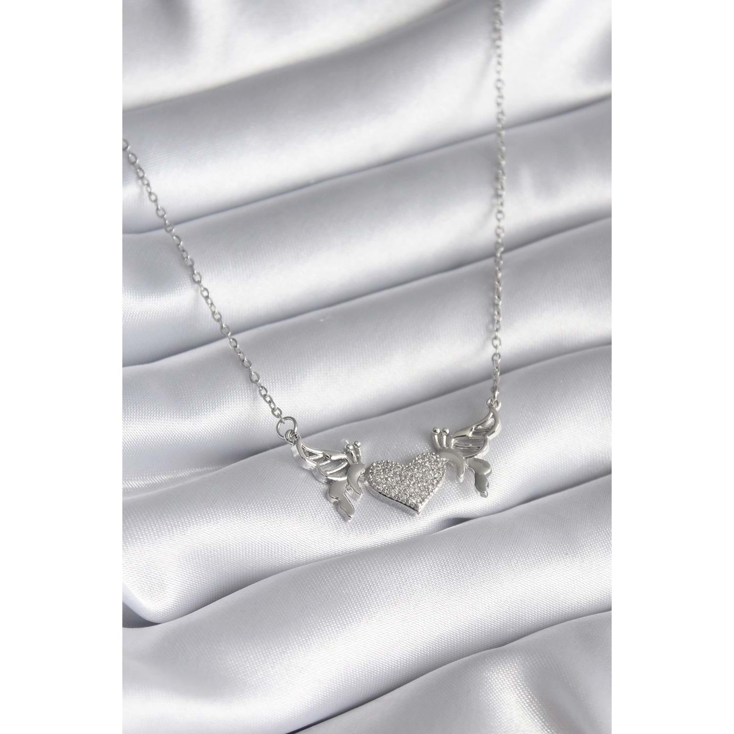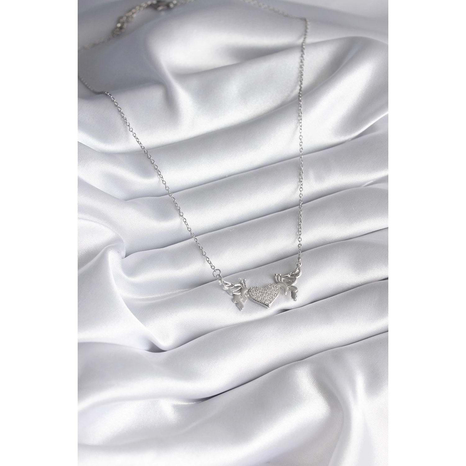316L Çelik Gümüş Renk Zirkon Taşlı Kanat Kalp Model Kadın Kolye