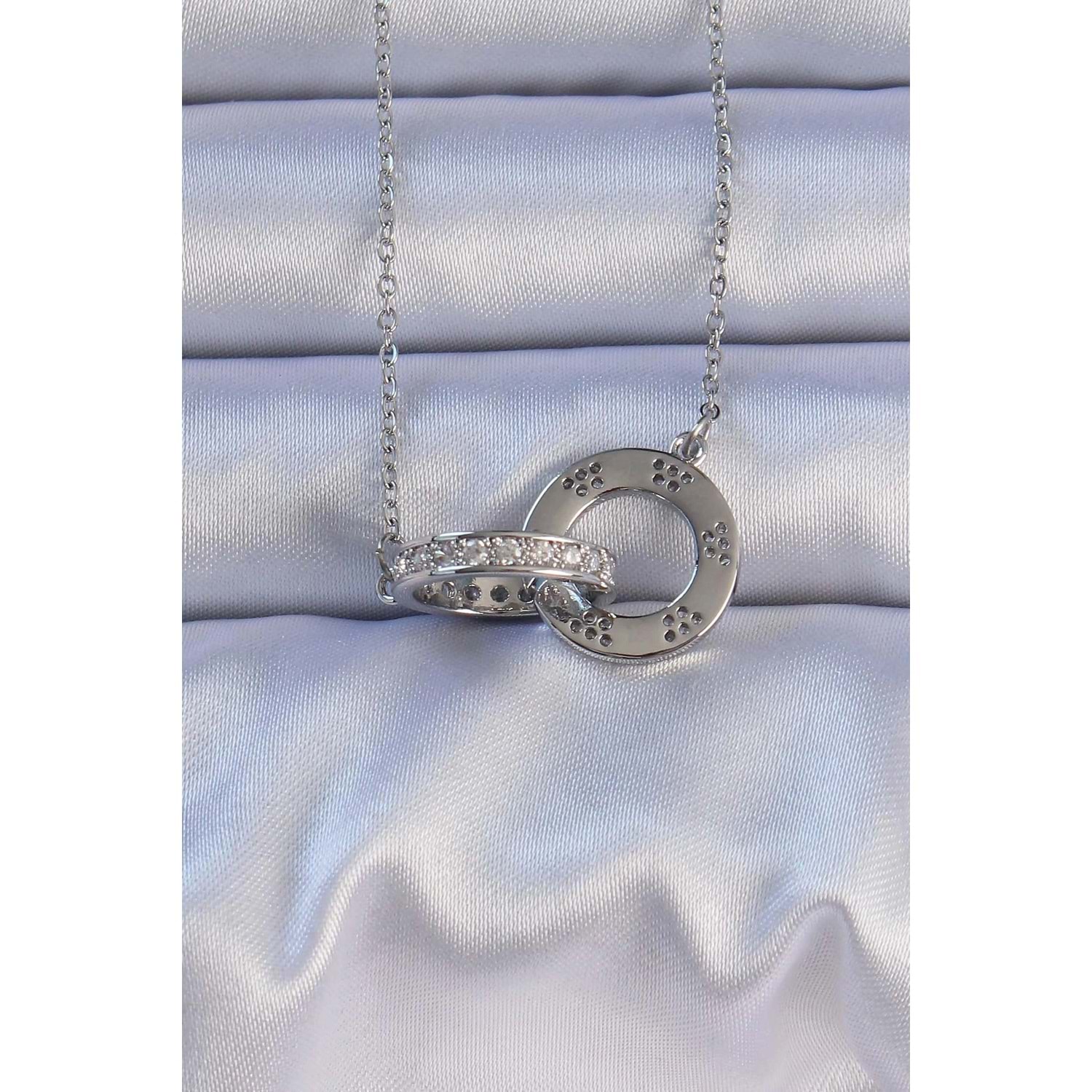 316L Çelik Gümüş Renk Zirkon Taşlı Kolye