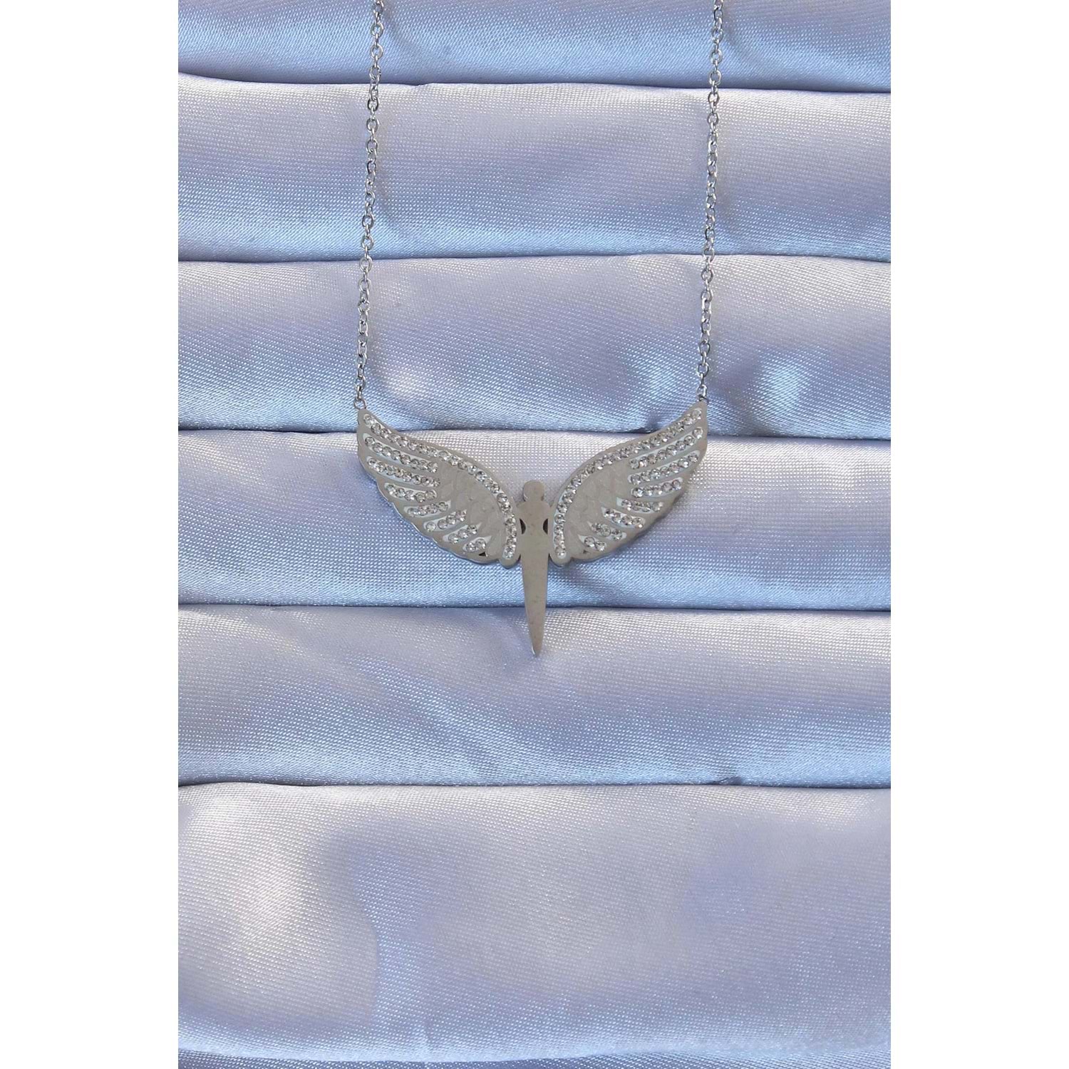 316L Çelik Gümüş Renk Zirkon Taşlı Mikail Kolye