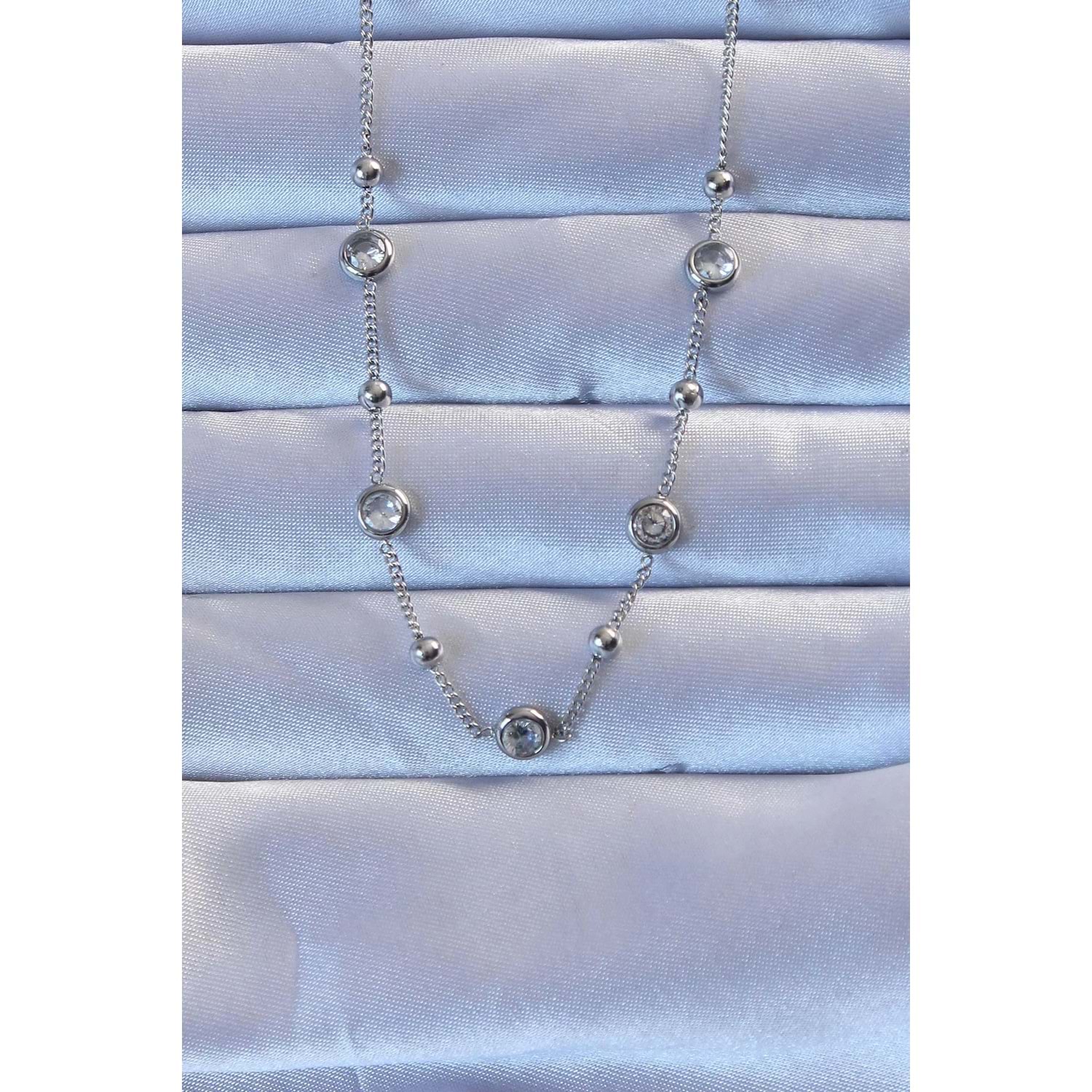 316L Çelik Gümüş Renk Zirkon Taşlı Top Zincirli Kolye