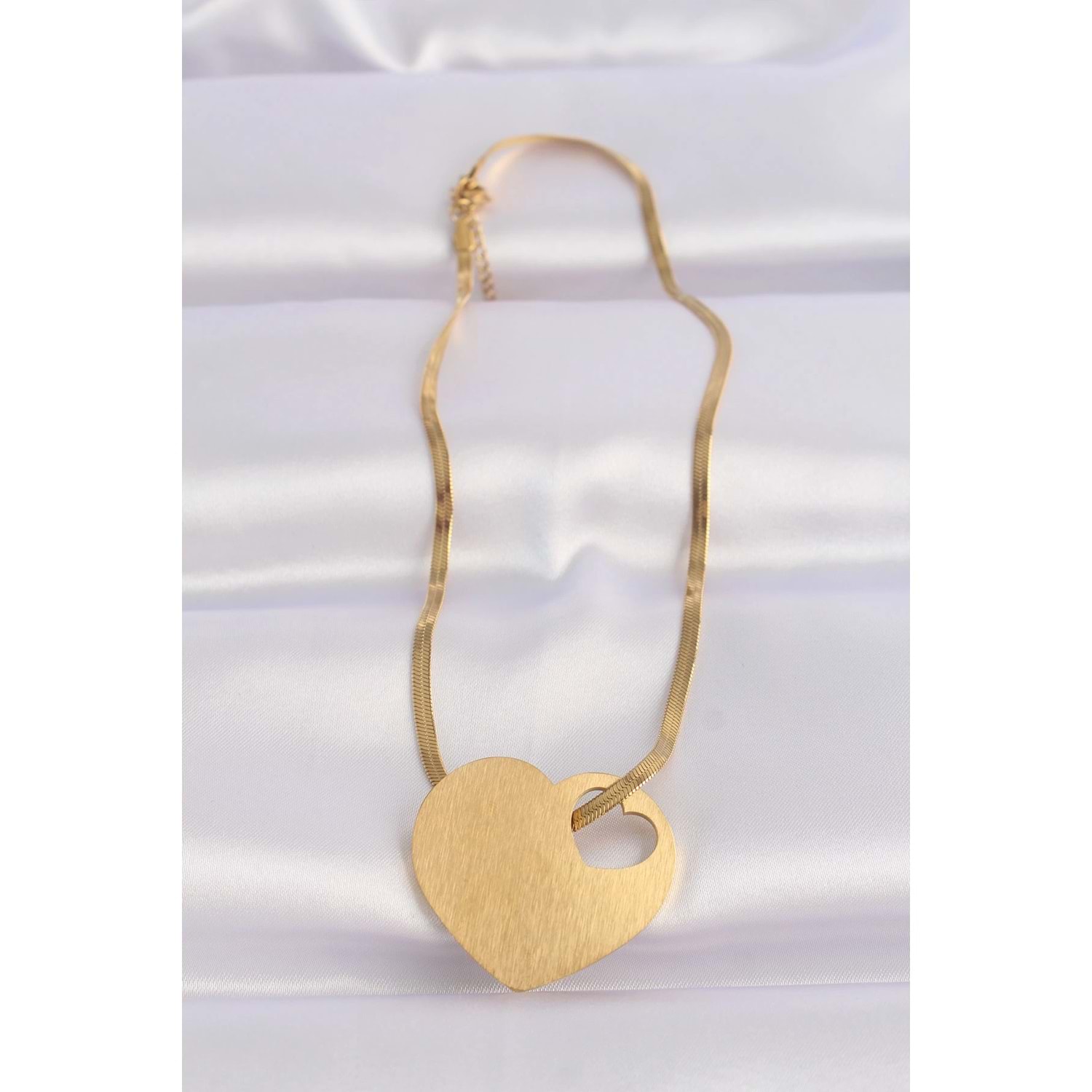 316L Çelik İtalyan Zincir Altın Renk Düz Plaka Kalp Kolye