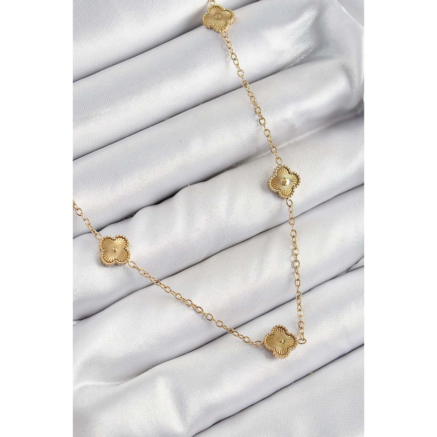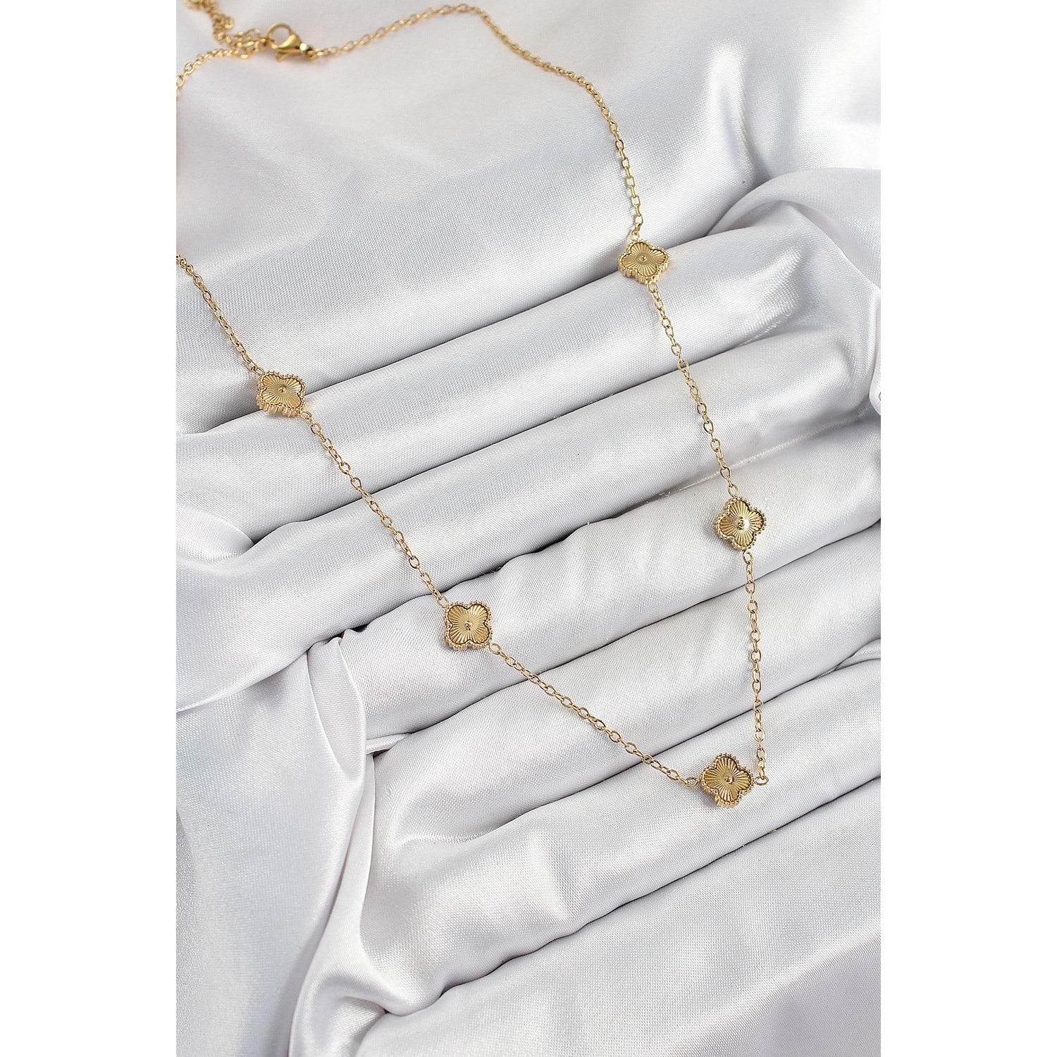 316L Çelik Yonca Model Gold Renk Kadın Kolye