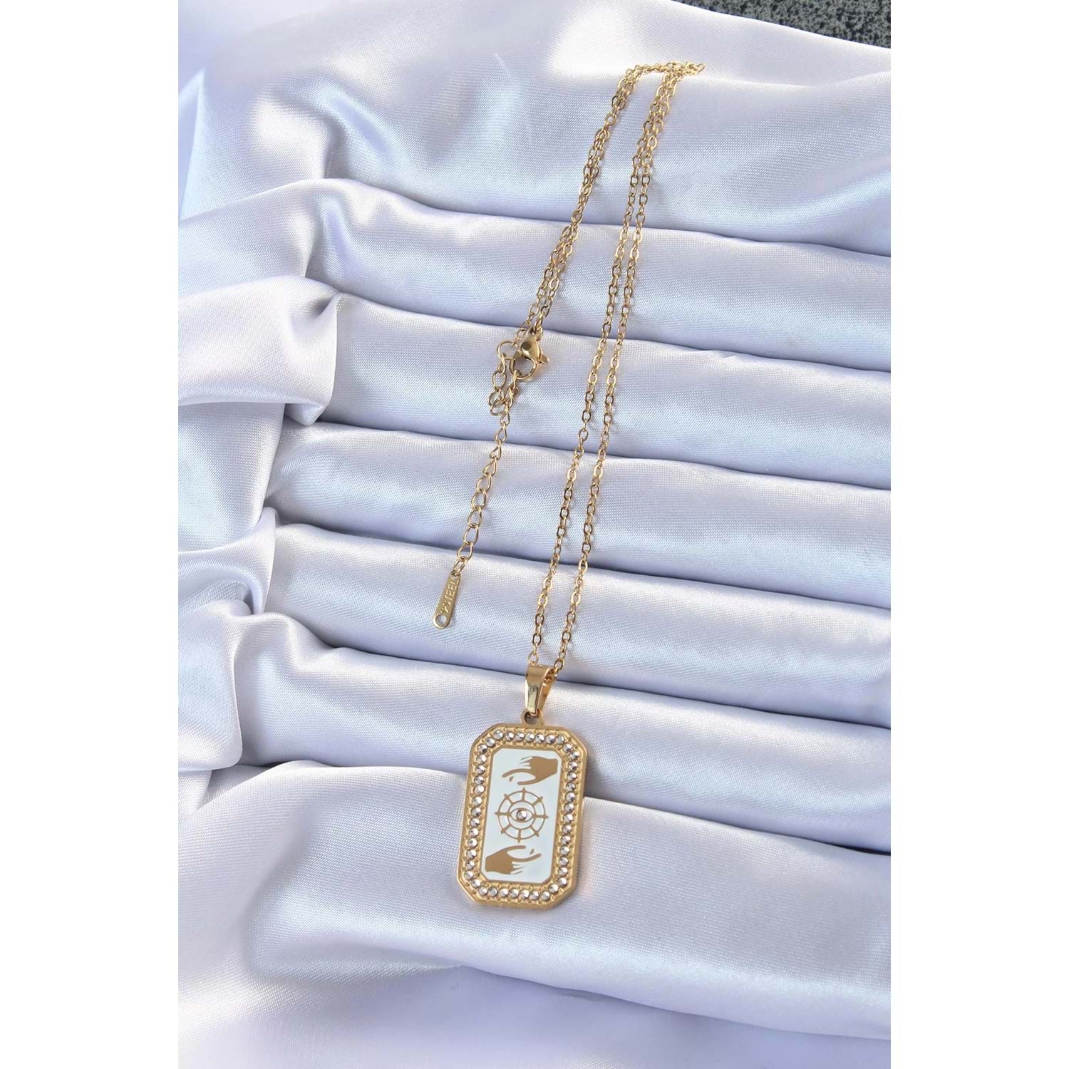 316L Çelik Zincir Altın Renk Mineli Zirkon Taşlı Göz Figür Tarot Kolye