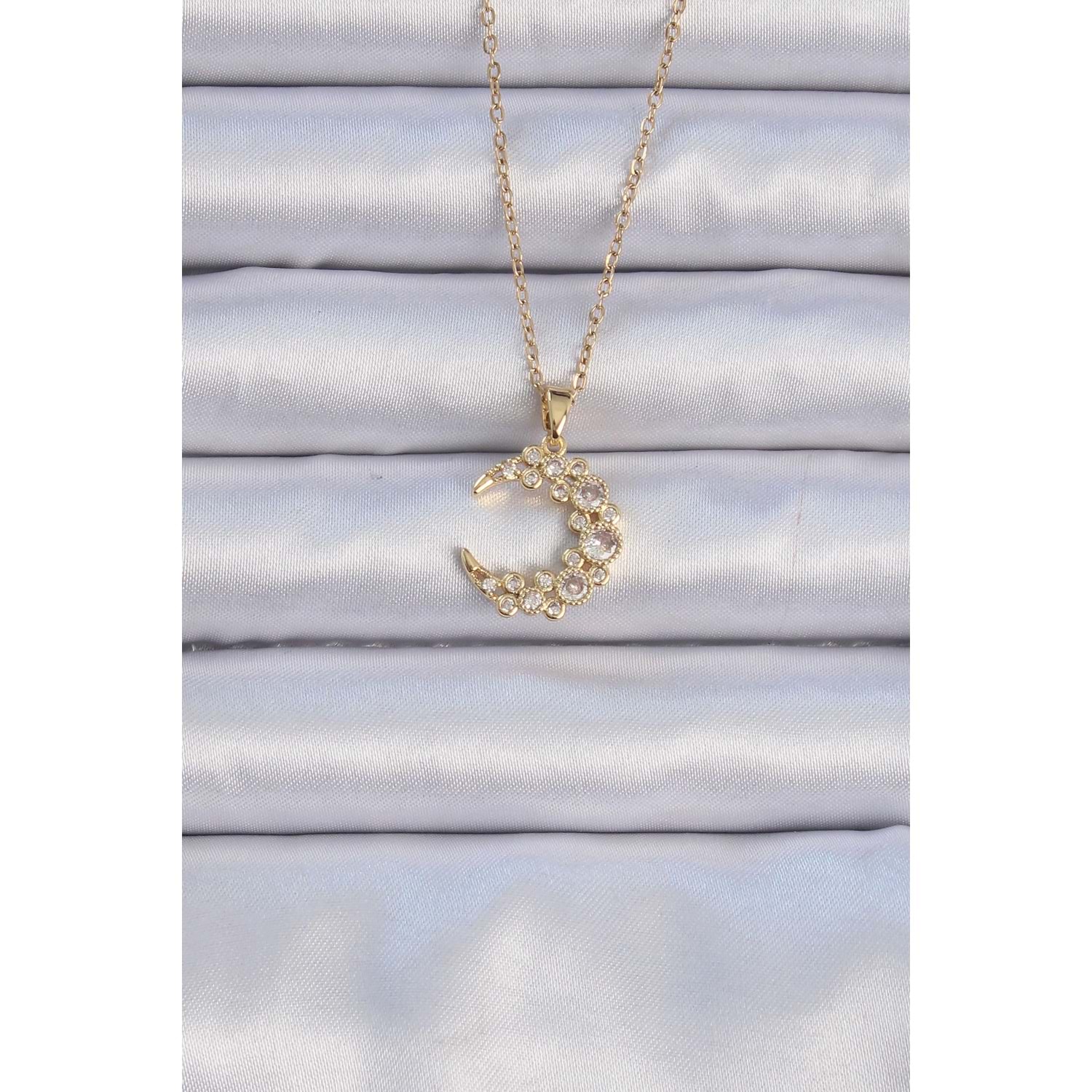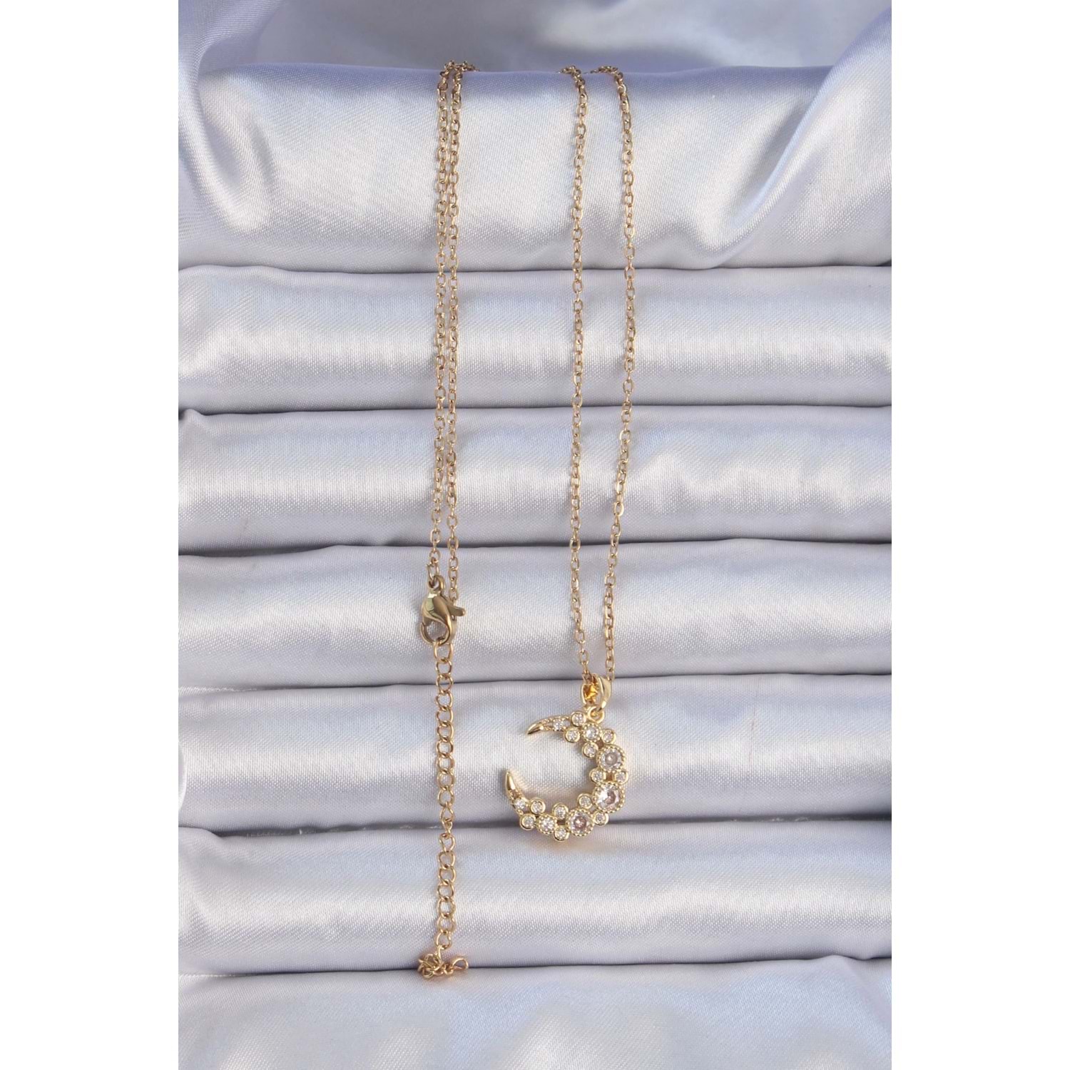 316L Çelik Zincir Altın Renk Zirkon Taşlı Ay Kolye