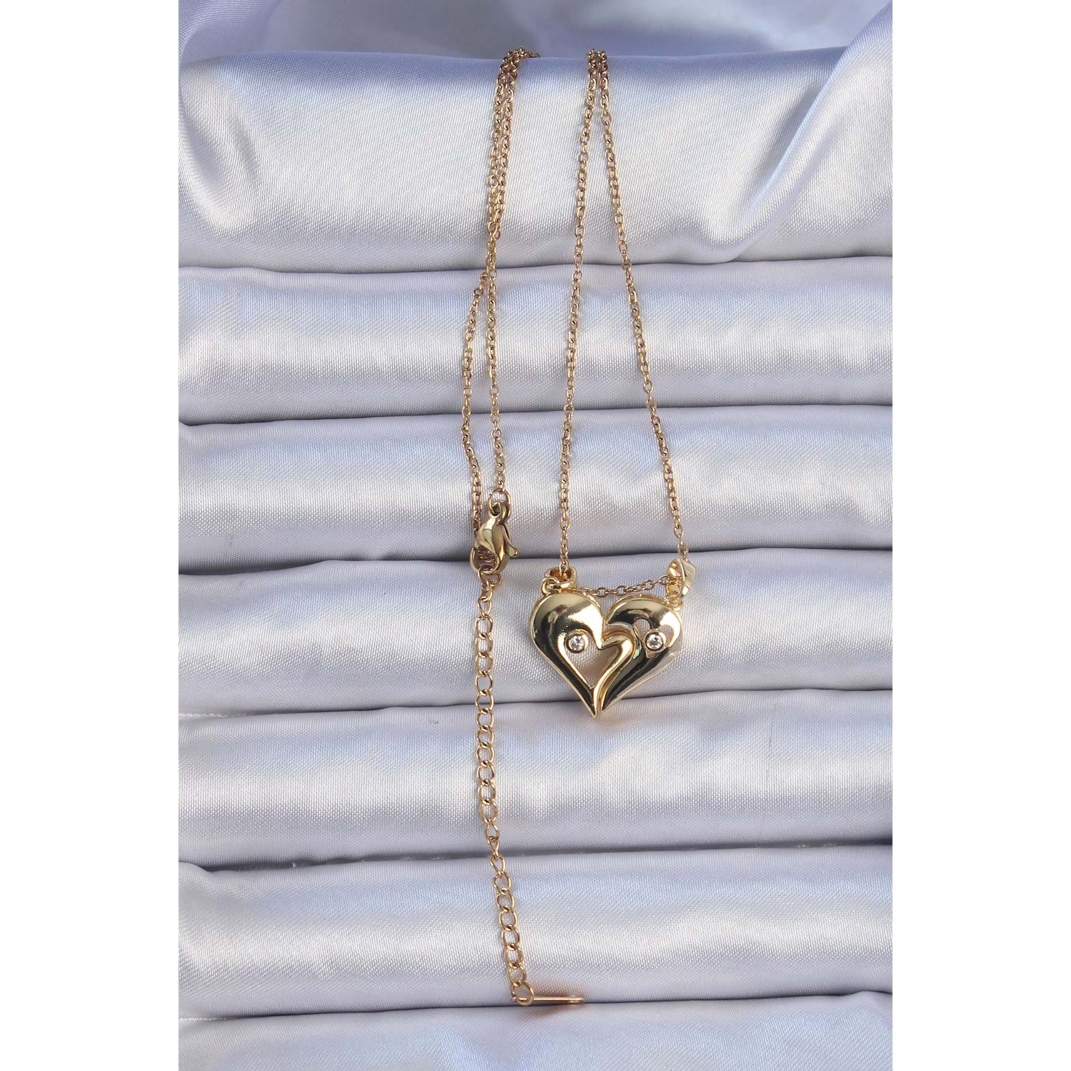 316L Çelik Zincir Altın Renk Zirkon Taşlı Mıknatıslı Kalp Kolye