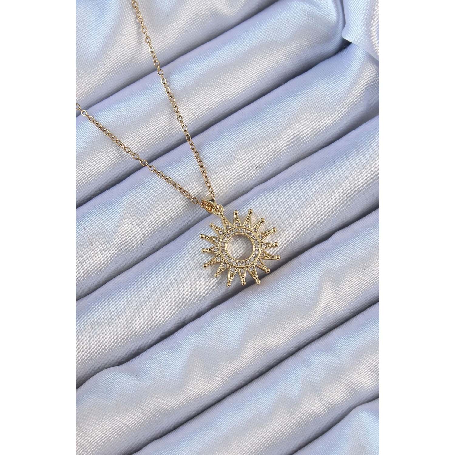 316L Çelik Zincir Altın Renk Zirkon Taşlı Parlayan Güneş Kolye