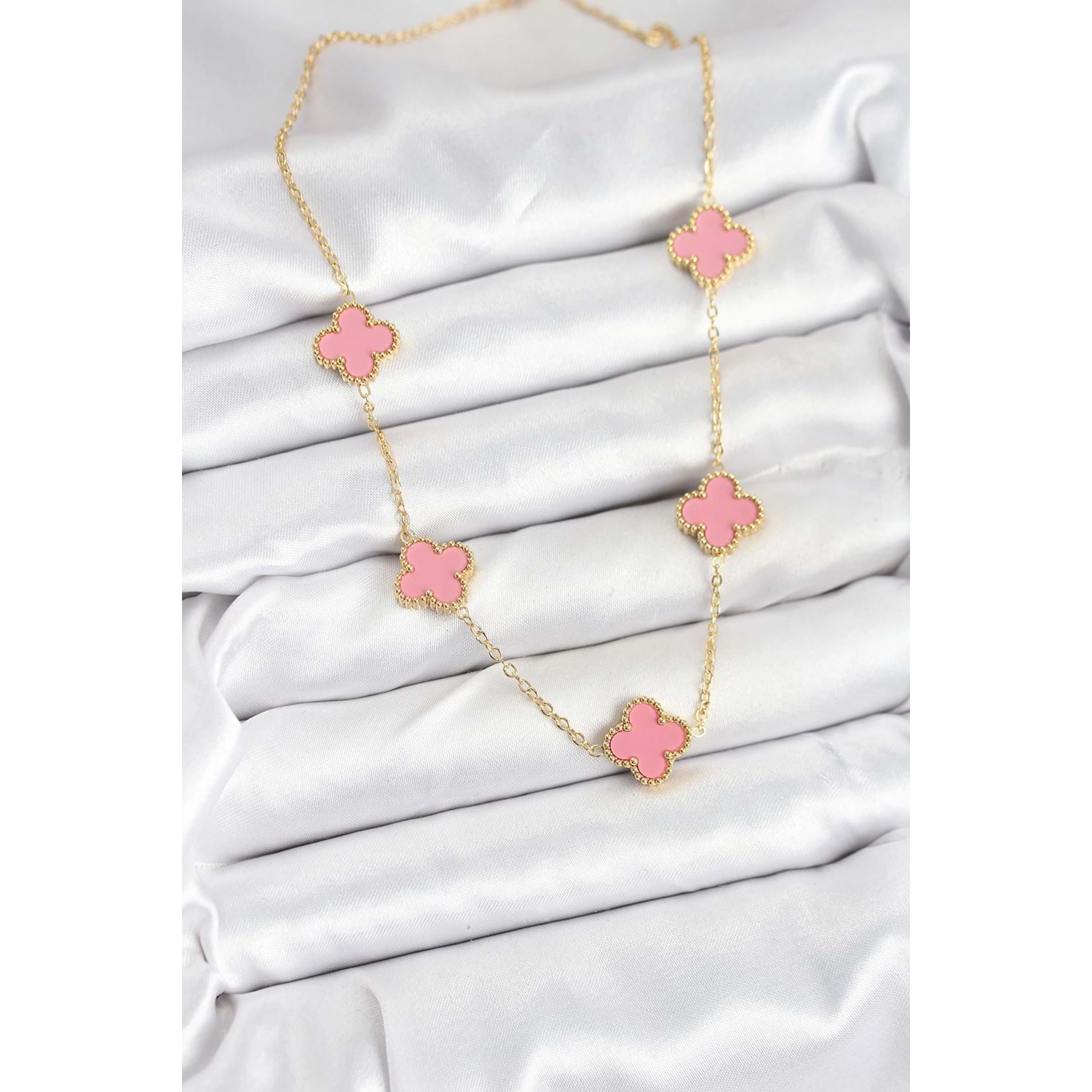 316L Çelik Zincir Gold Pembe Renk Yonca Kadın Kolye