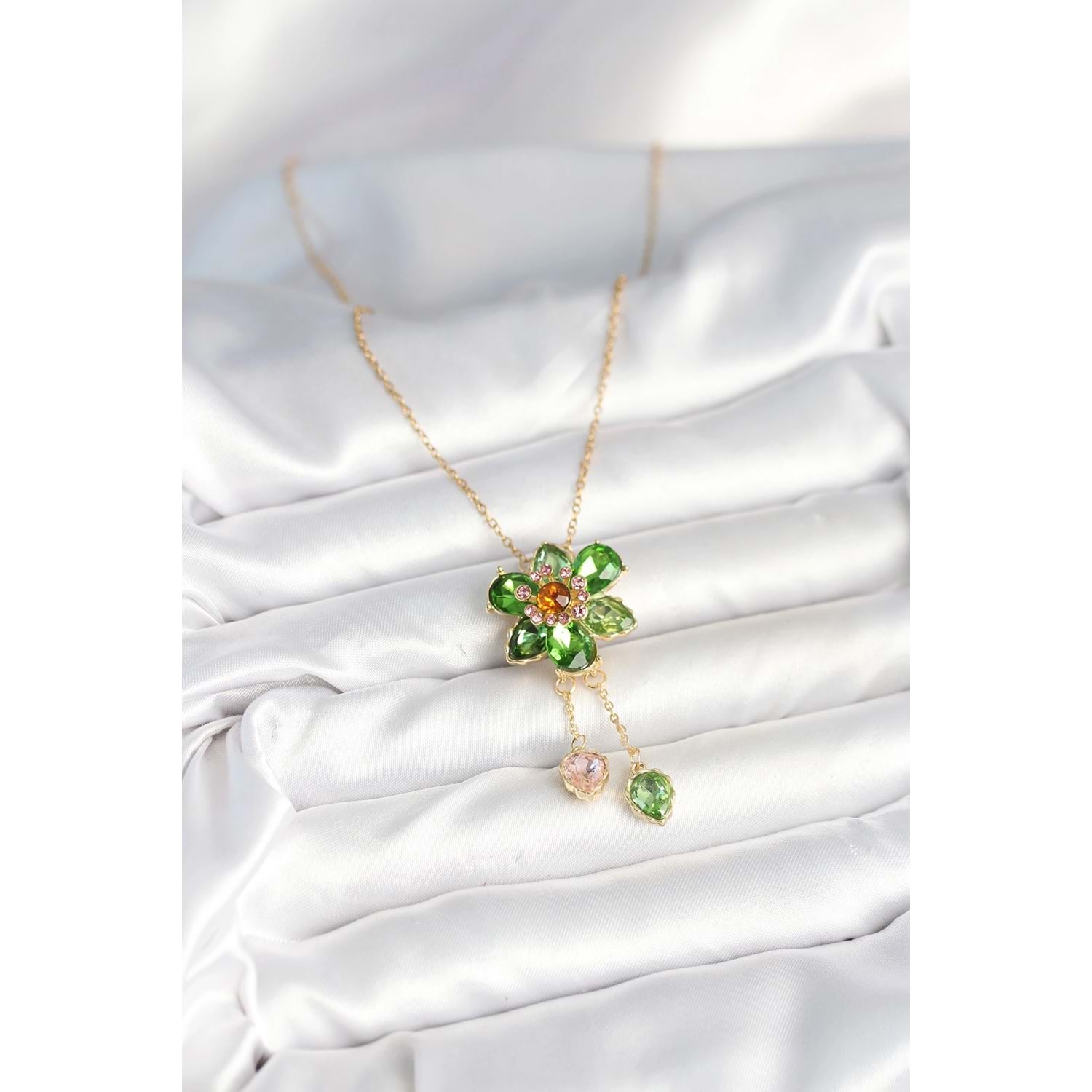 316L Çelik Zincir Gold Renk Çiçek Model Sallantılı Kadın Kolye