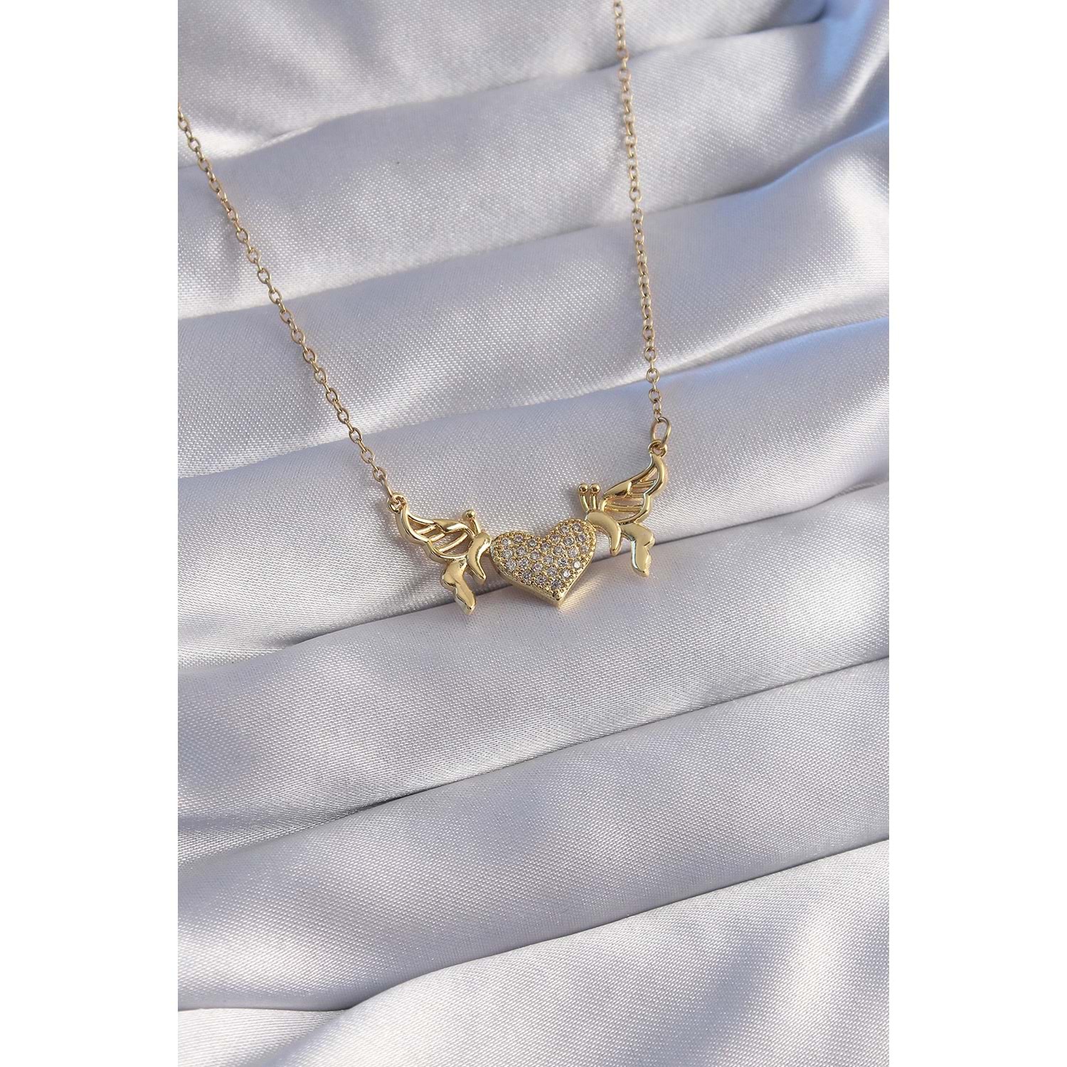 316L Çelik Zincir Gold Renk Zirkon Taşlı Kalp Model Kelebek Detay Kolye