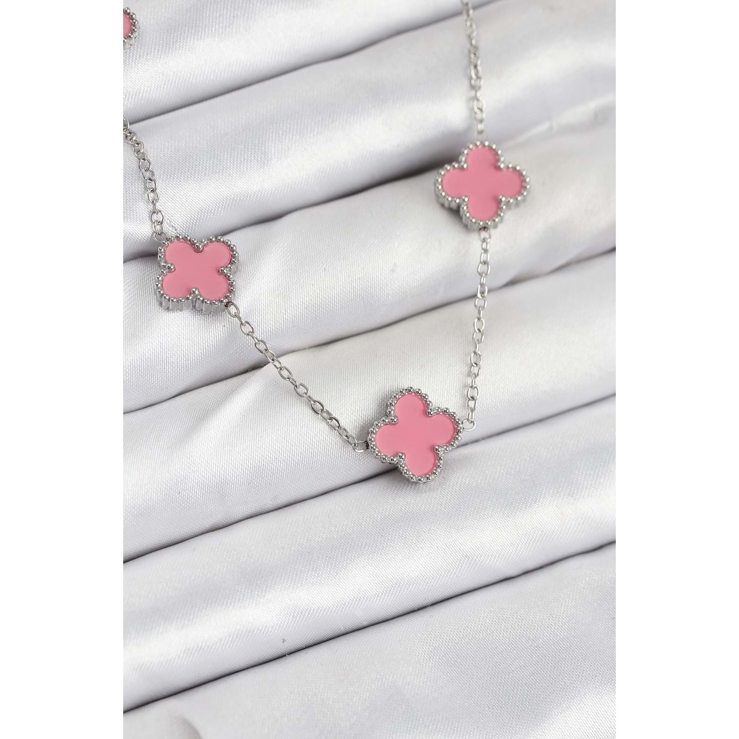 316L Çelik Zincir Gümüş Pembe Renk Yonca Kadın Kolye