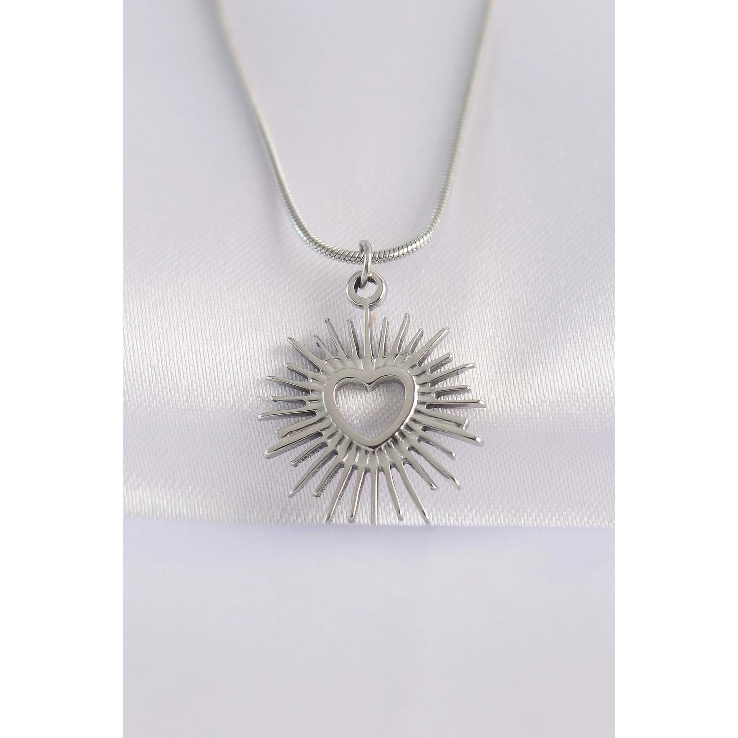 316L Çelik Zincir Gümüş Renk Kalp Güneşi Tasarımlı Kolye