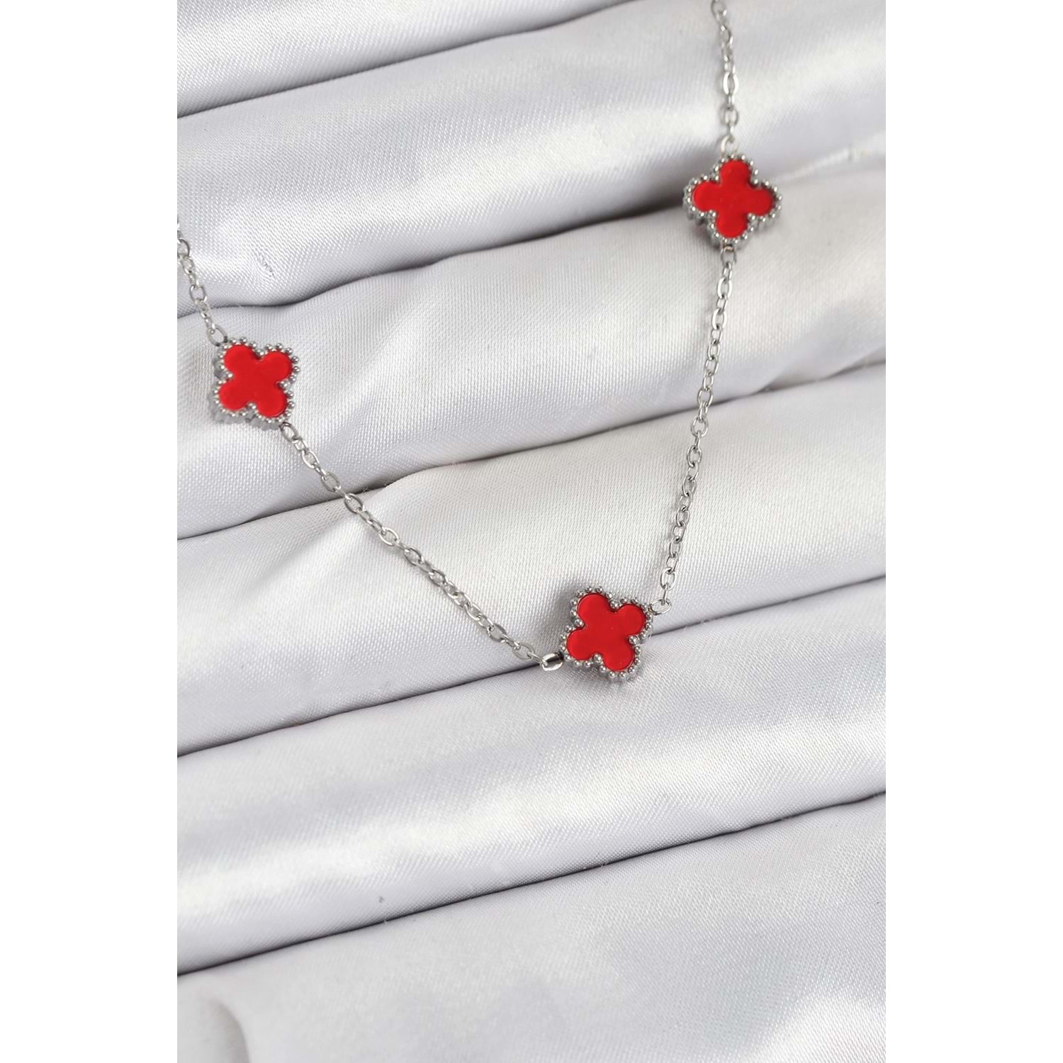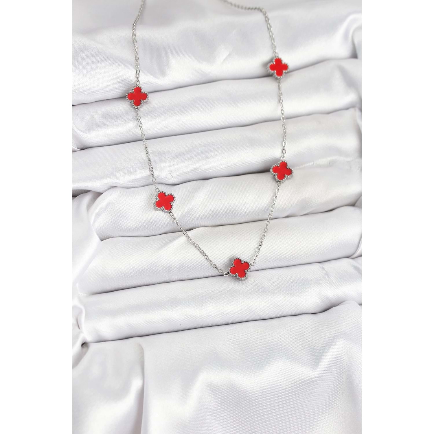 316L Çelik Zincir Gümüş Renk Kırmızı Baby Boy Yonca Kadın Kolye