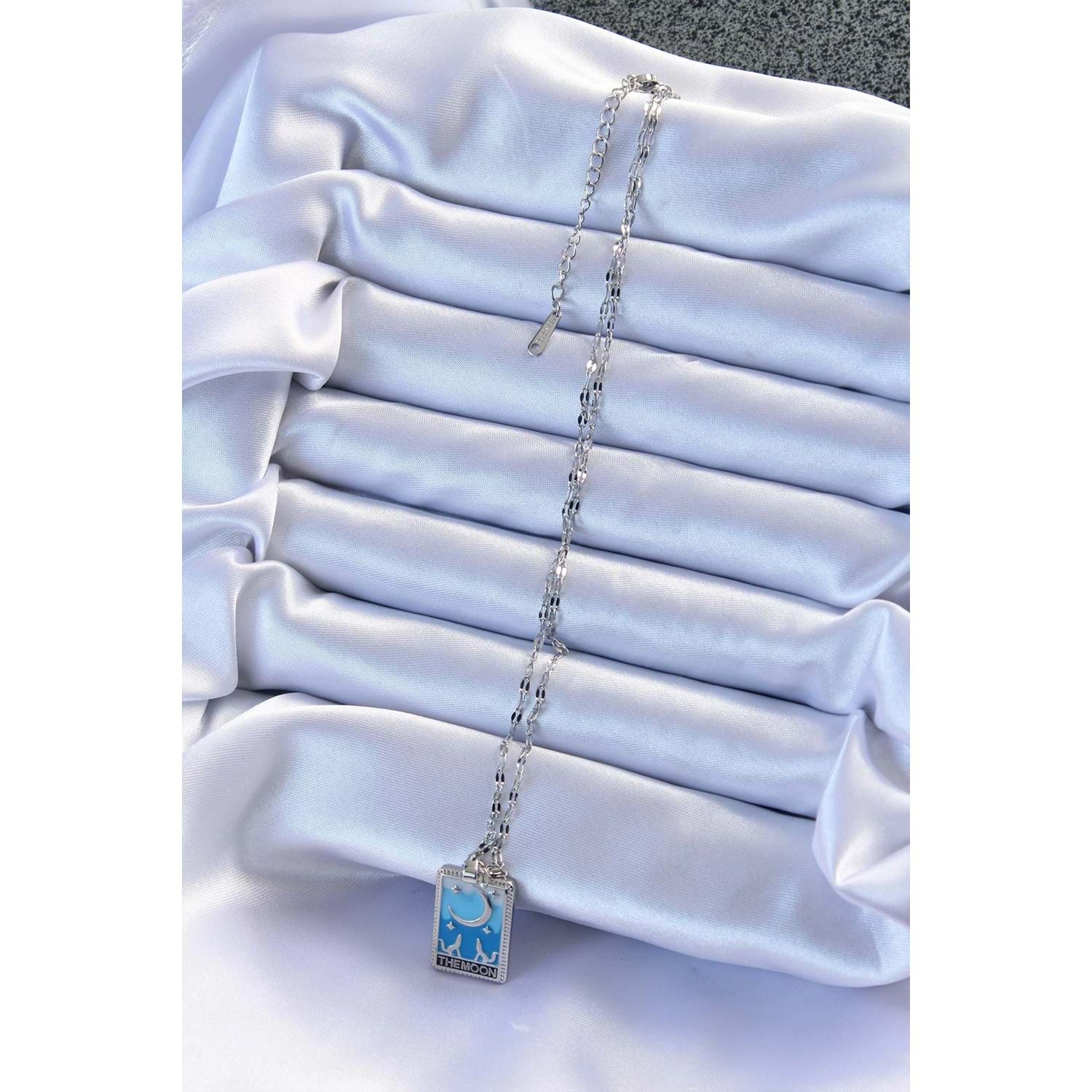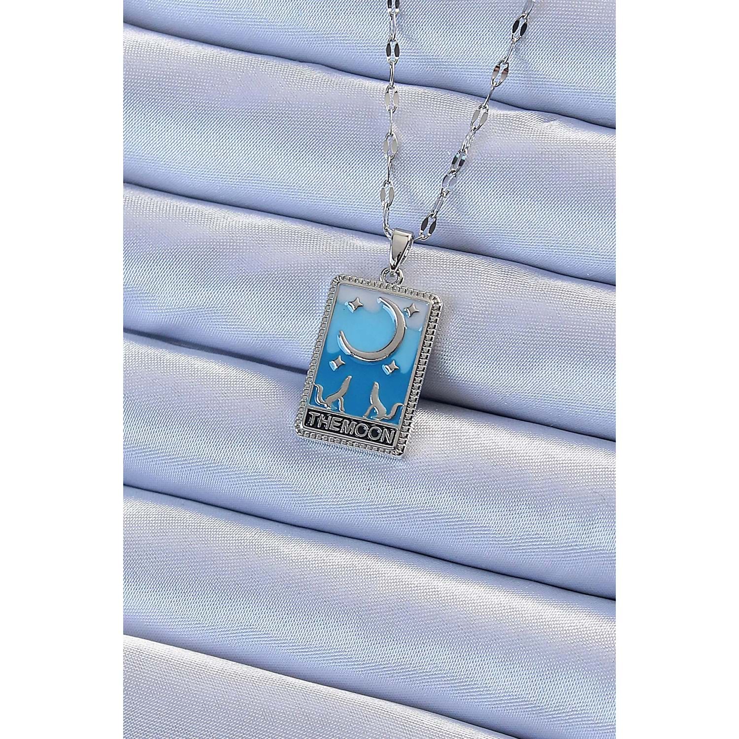 316L Çelik Zincir Gümüş Renk Mavi Mineli Ay Figür Tarot Kolye