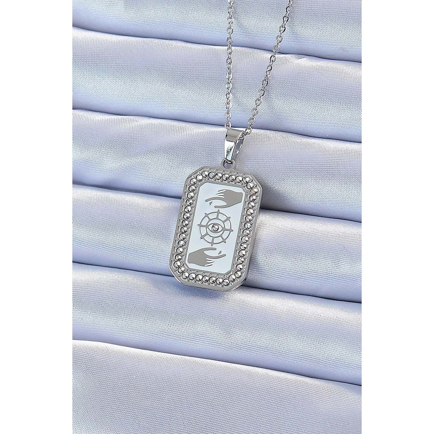 316L Çelik Zincir Gümüş Renk Mineli Zirkon Taşlı Göz Figür Tarot Kolye