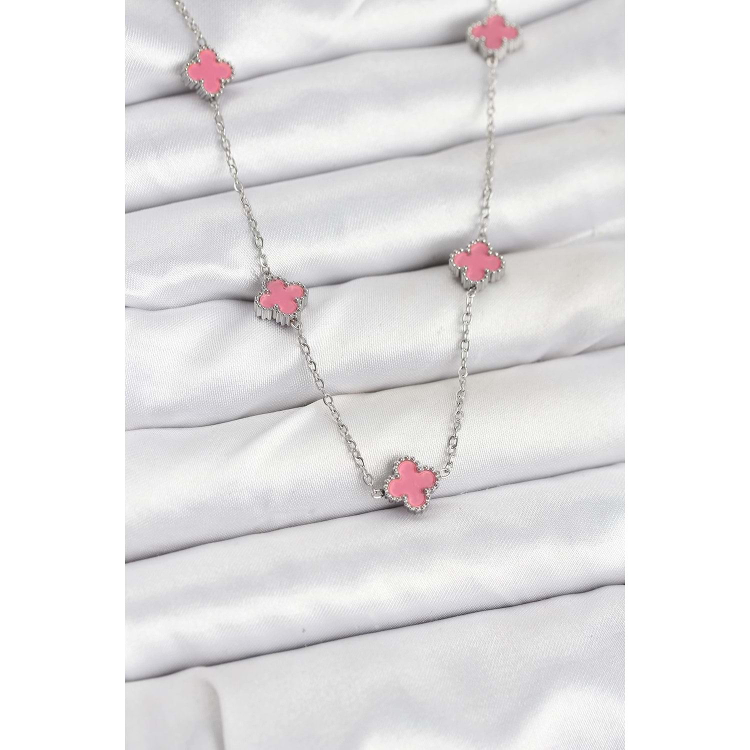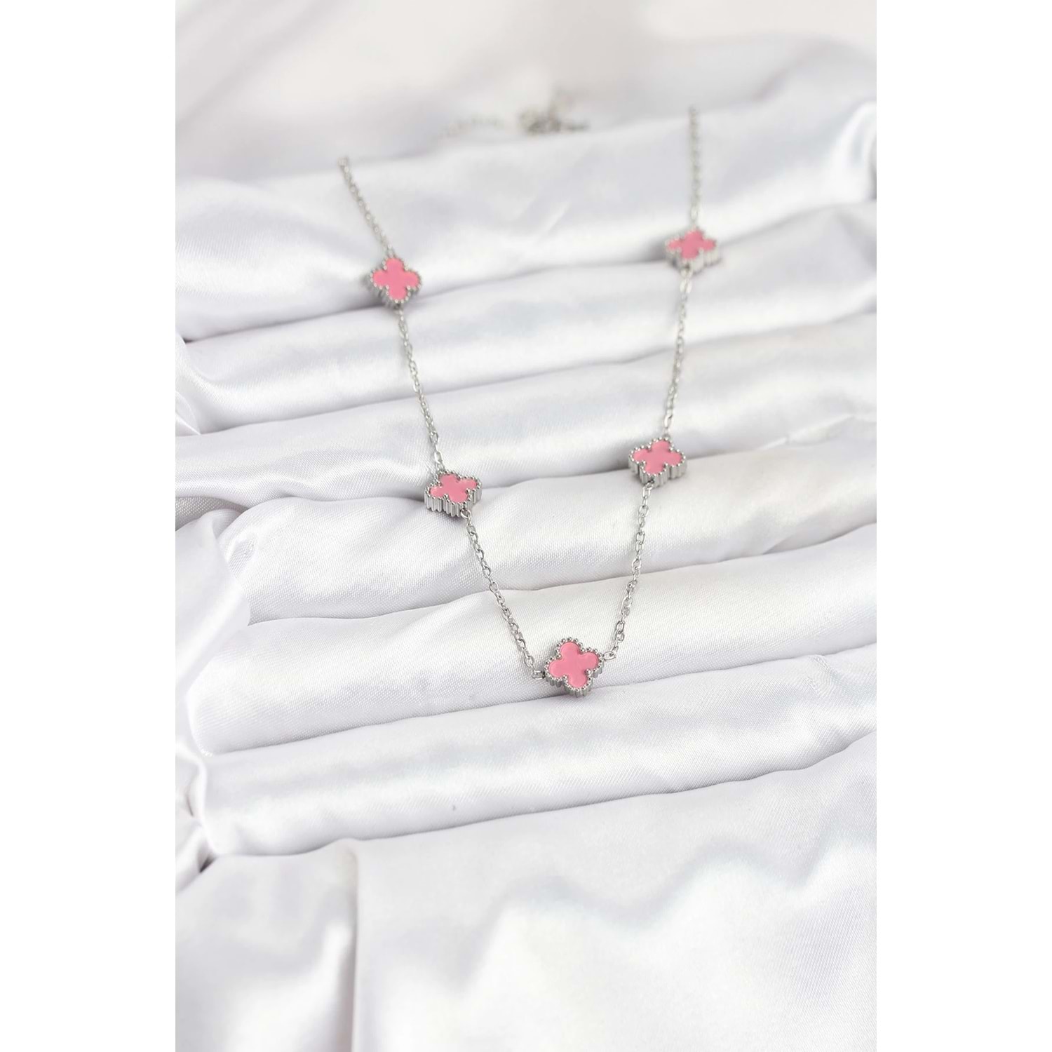 316L Çelik Zincir Gümüş Renk Pembe Baby Boy Yonca Kadın Kolye