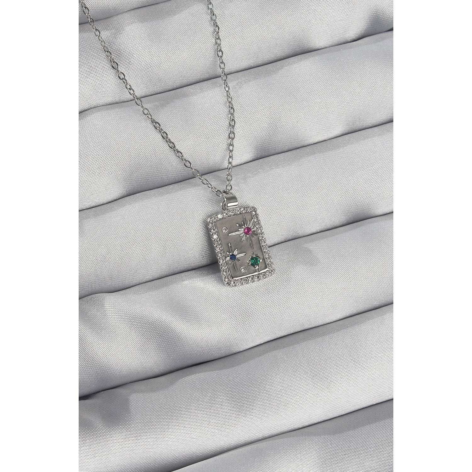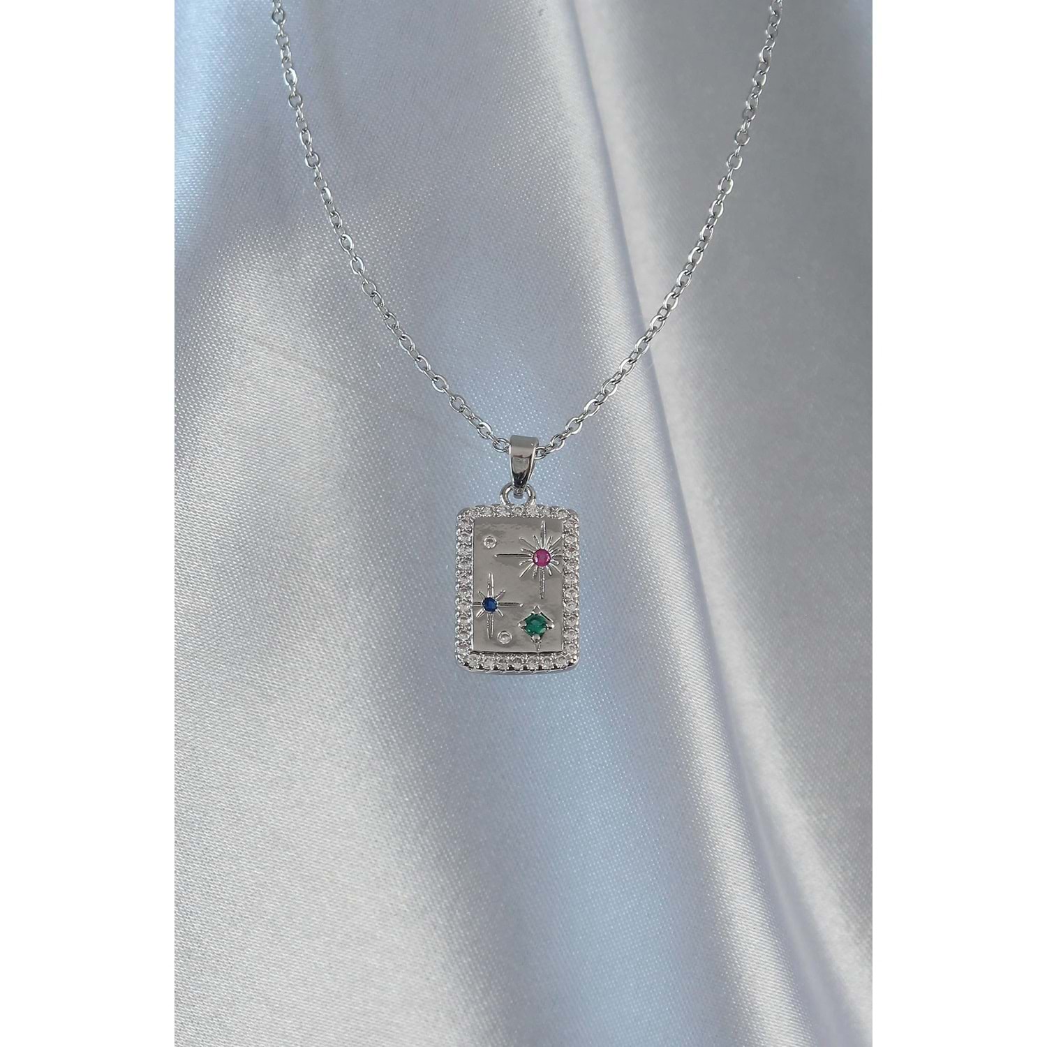 316L Çelik Zincir Gümüş Renk Renkli Zirkon Taşlı Vintage Kolye
