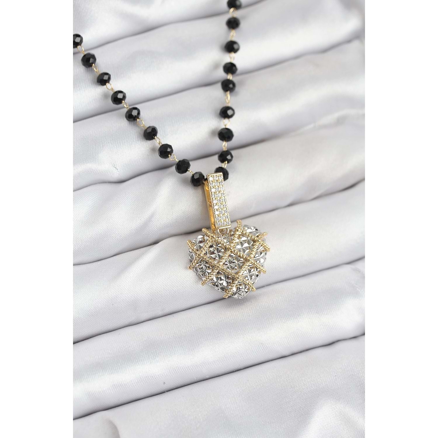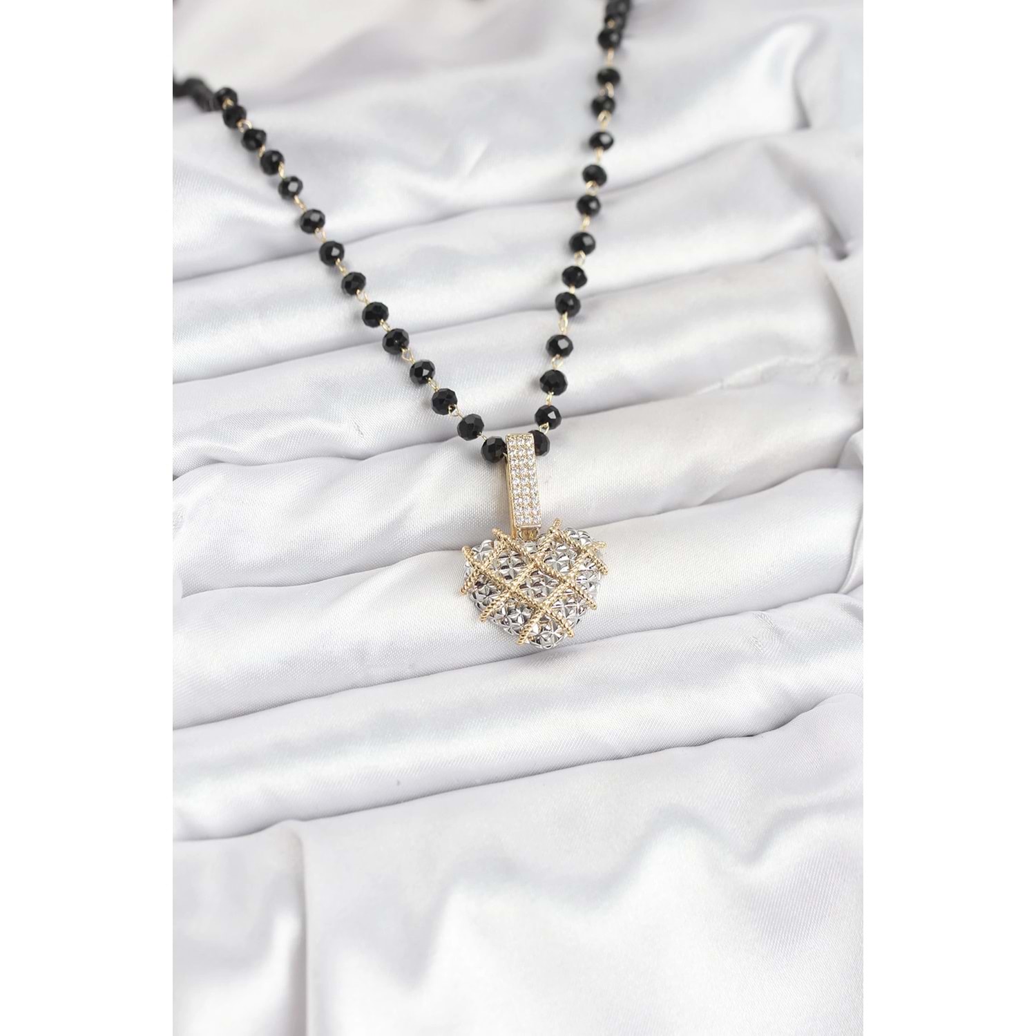 316L Çelik Zincir Kristal Boncuklu Kalpli Kadın Kolye