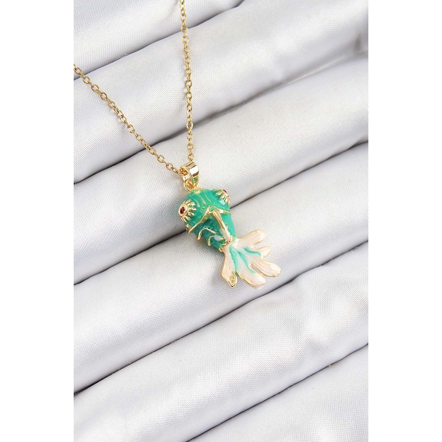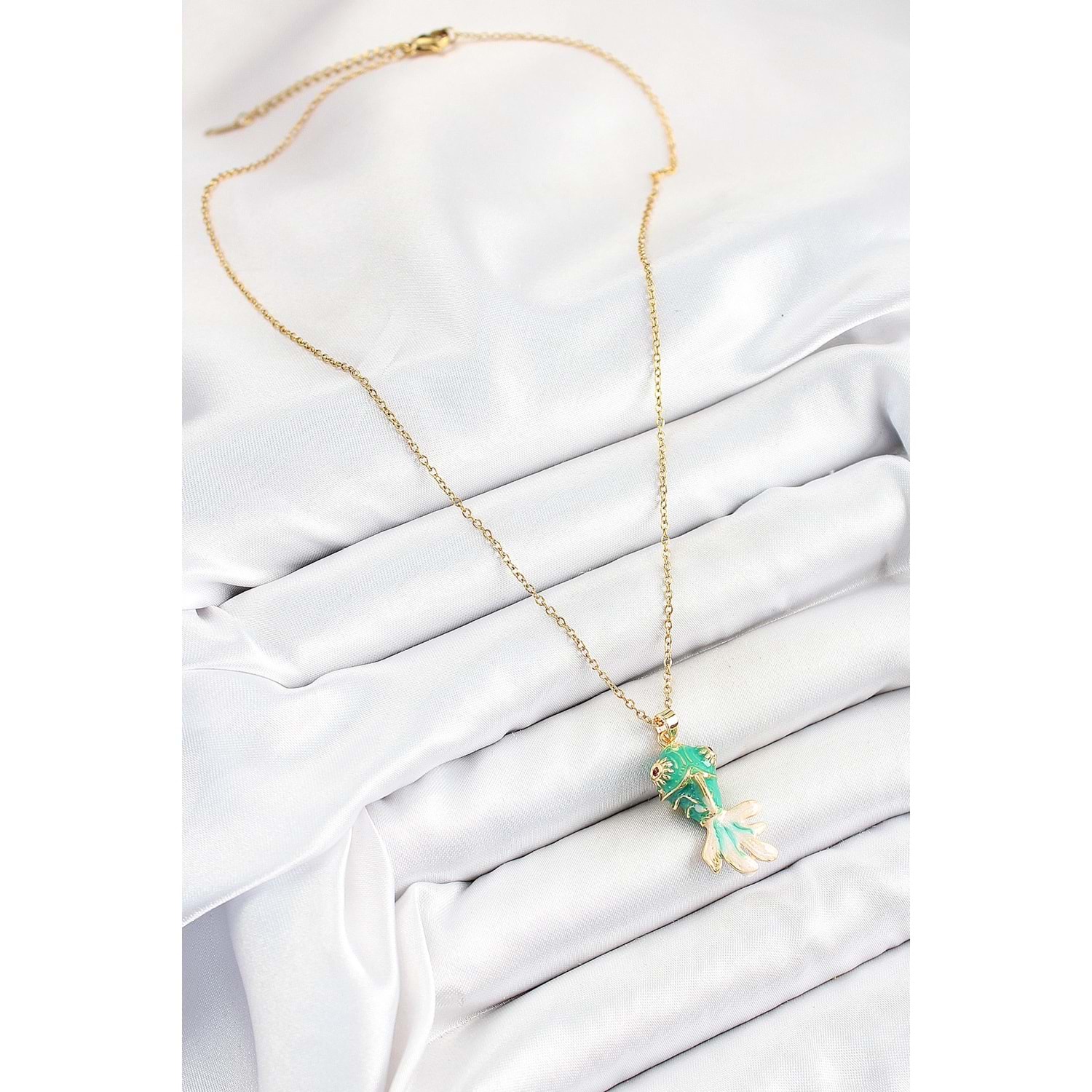 316L Çelik Zincir Yeşil Balık Model Gold Renk Kadın Kolye