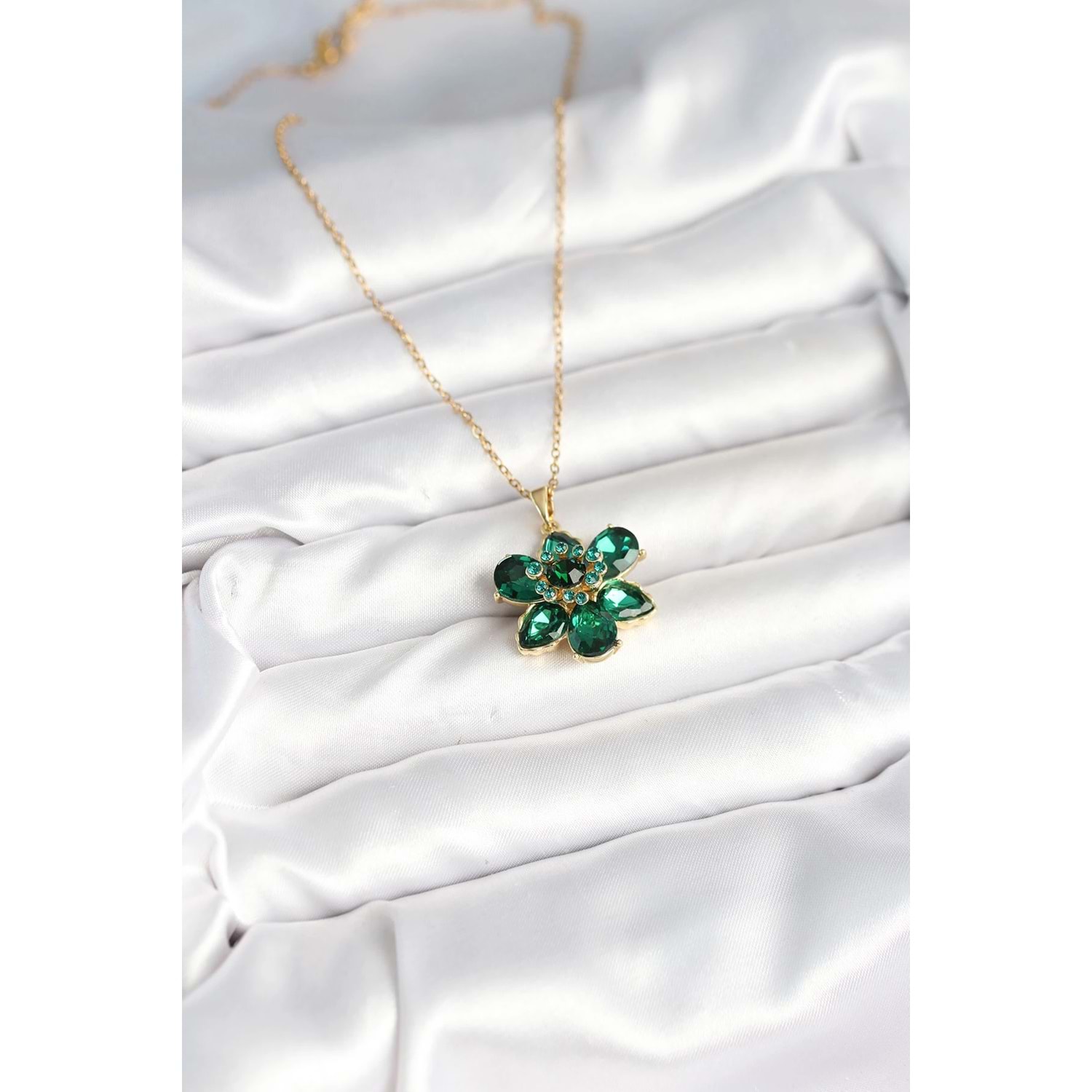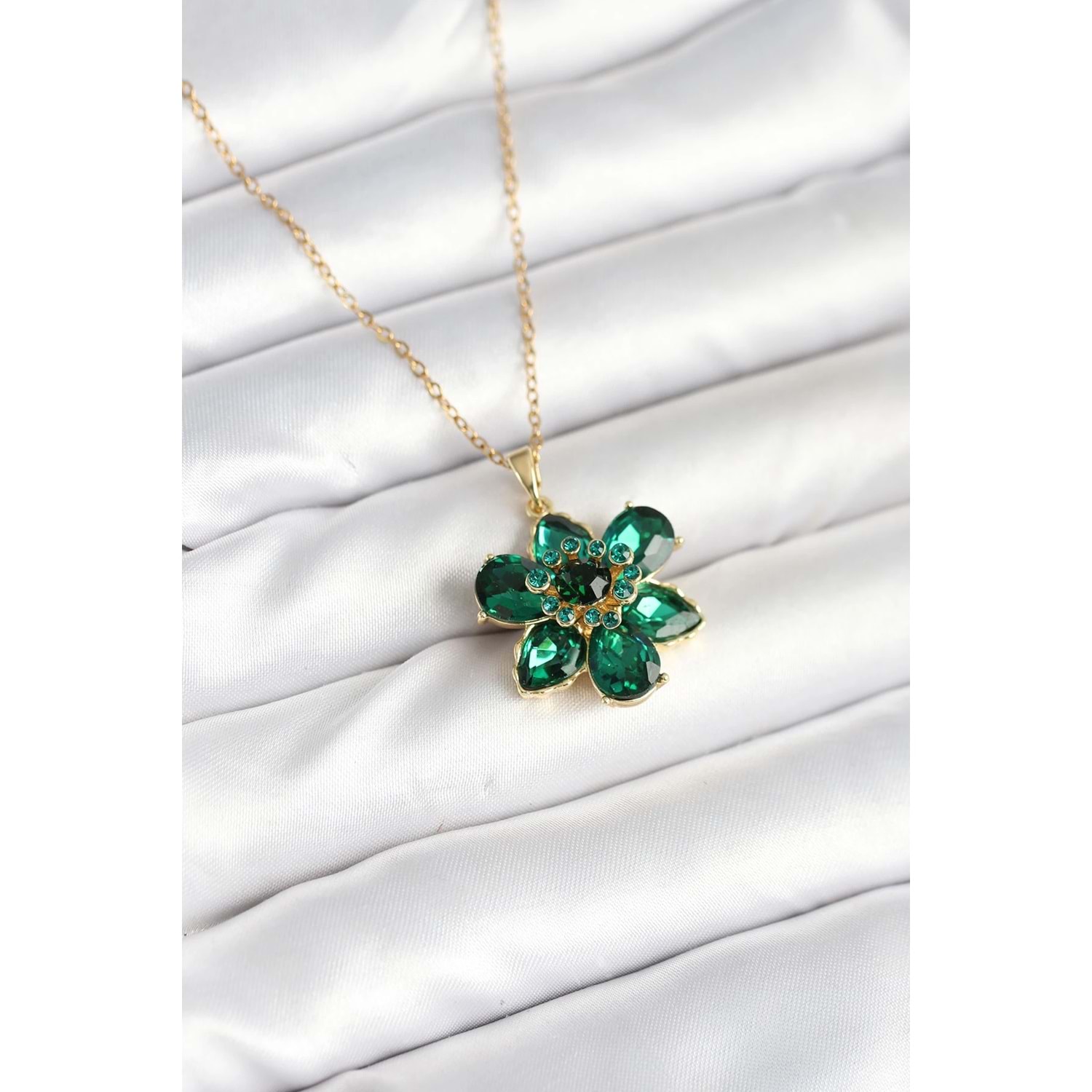 316L Çelik Zincirli Yeşil Çiçek Model Kadın Kolye