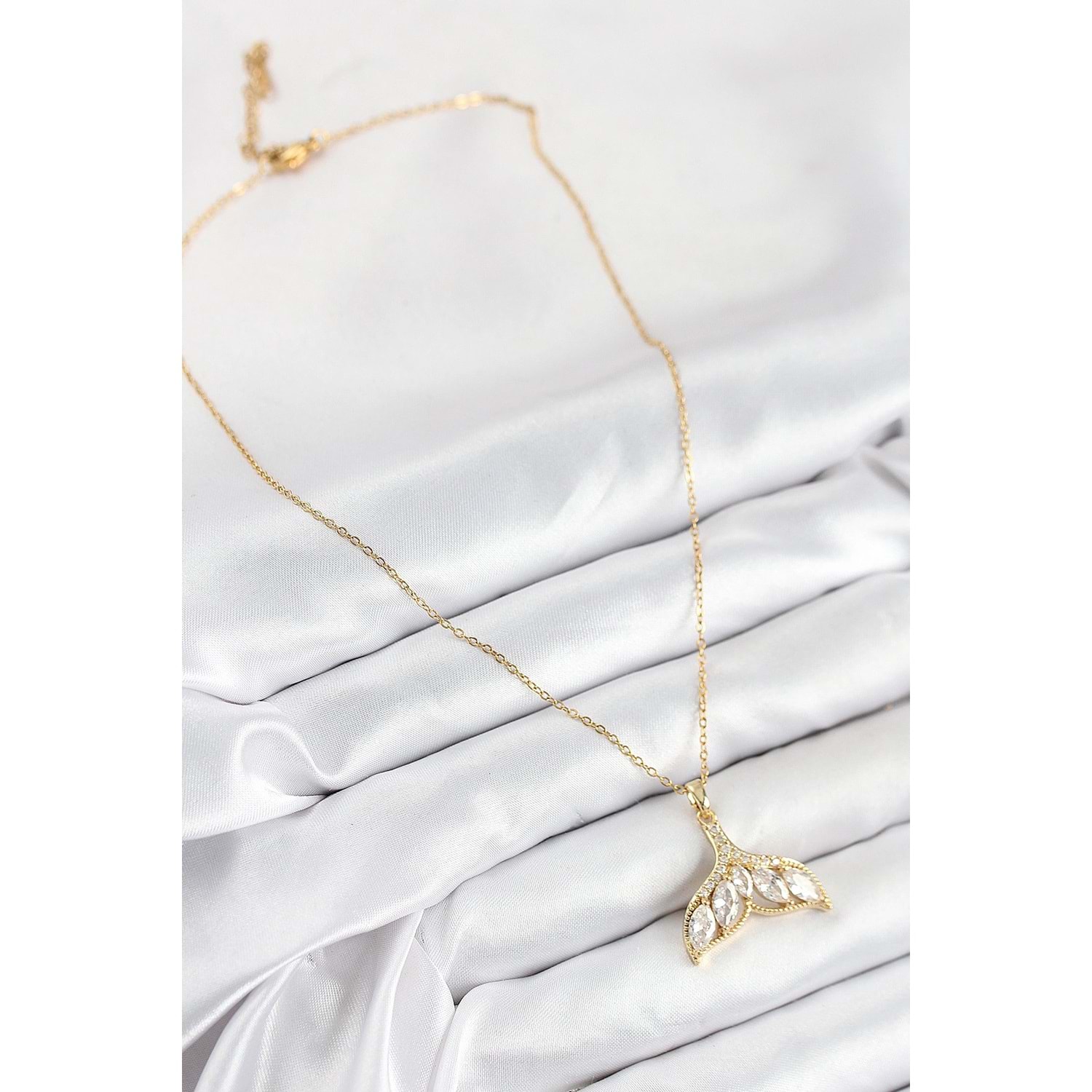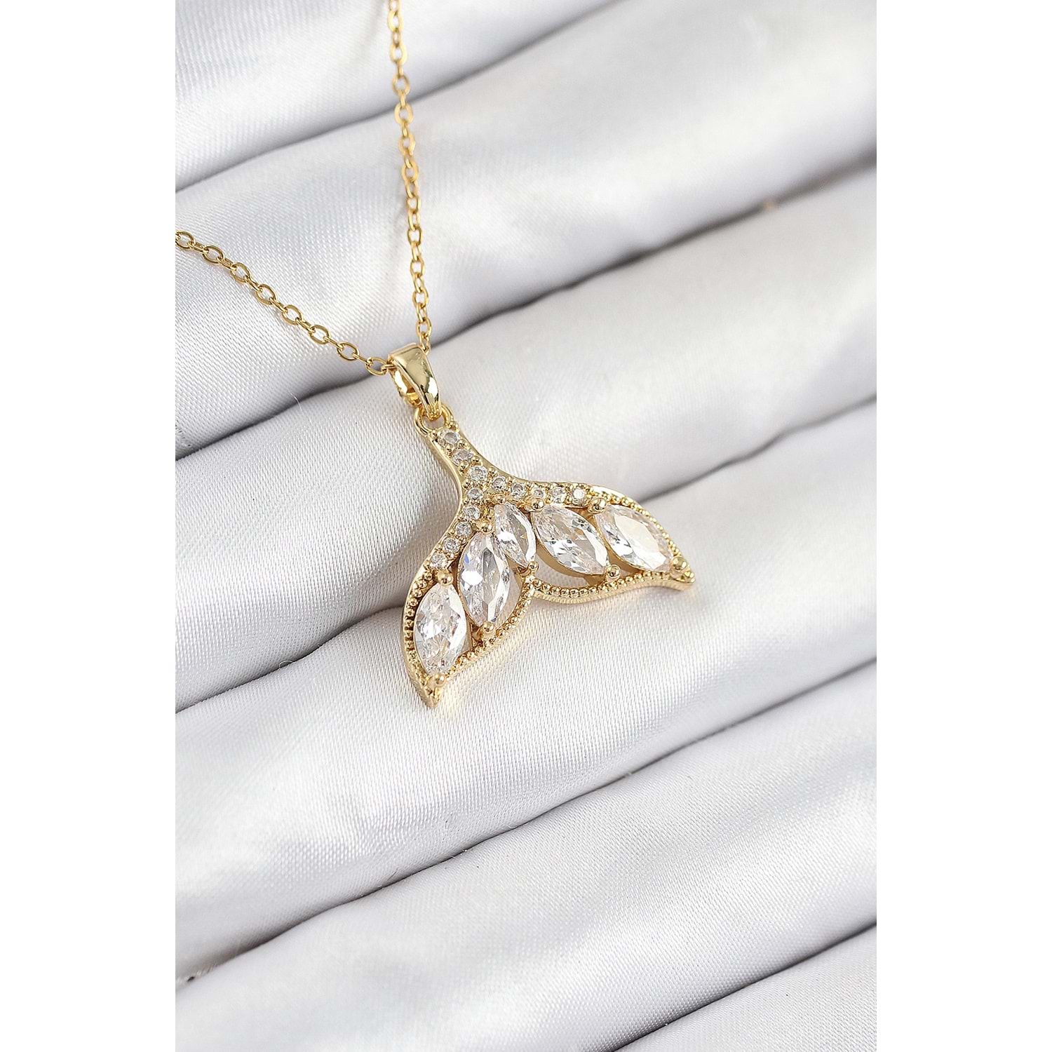 316L Çelik Zirkon Taşlı Balık Kuyruğu Model Gold Renk Kadın Kolye
