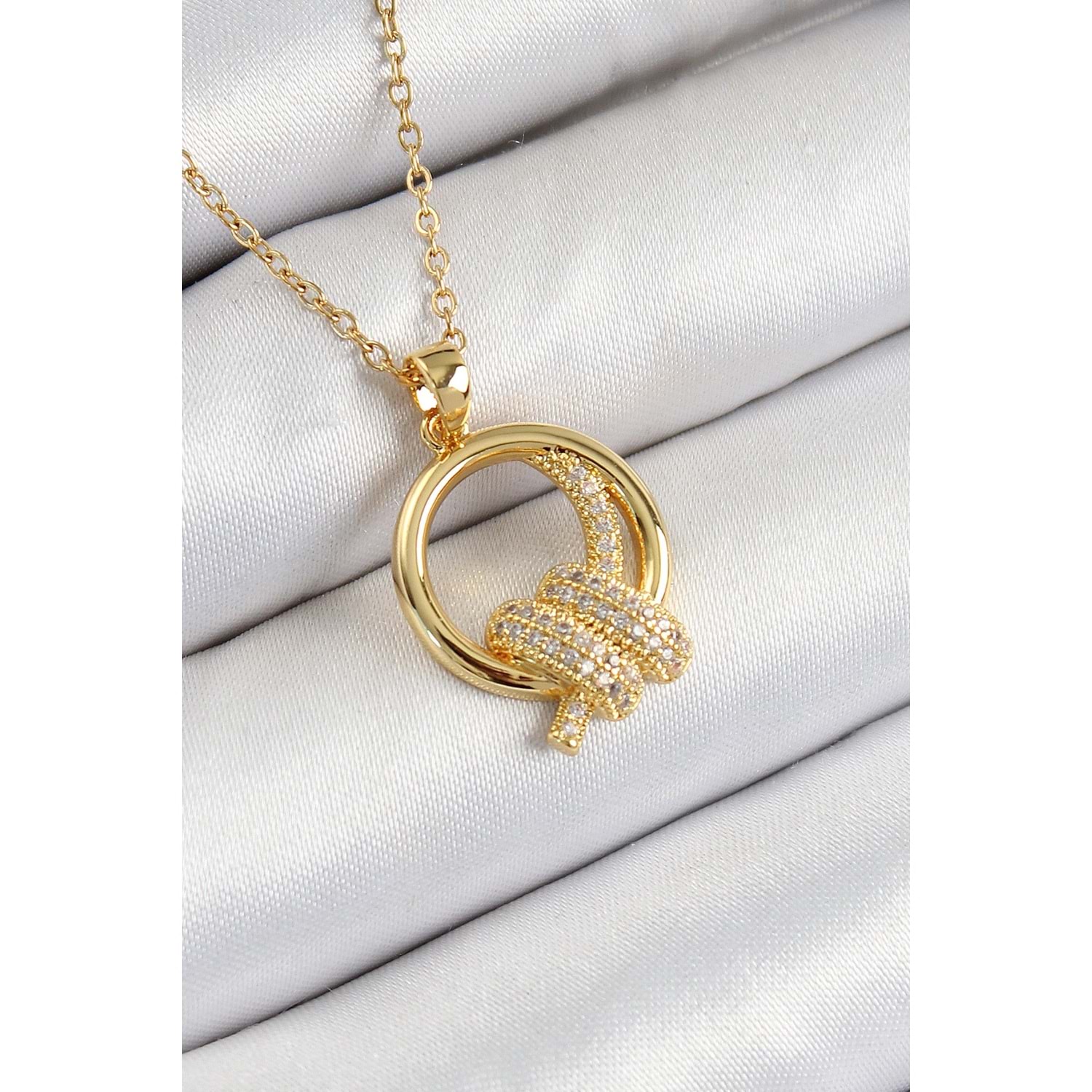 316L Çelik Zirkon Taşlı Düğüm Model Gold Renk Kadın Kolye