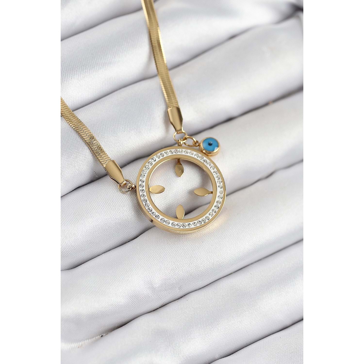 316L Çelik Zirkon Taşlı Takılabilir Gold Renk Kadın Kolye