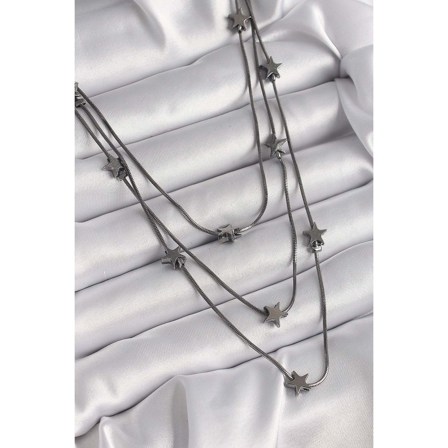 Pirinç Füme Renk 3'Lü Yıldız Model Kadın Kolye