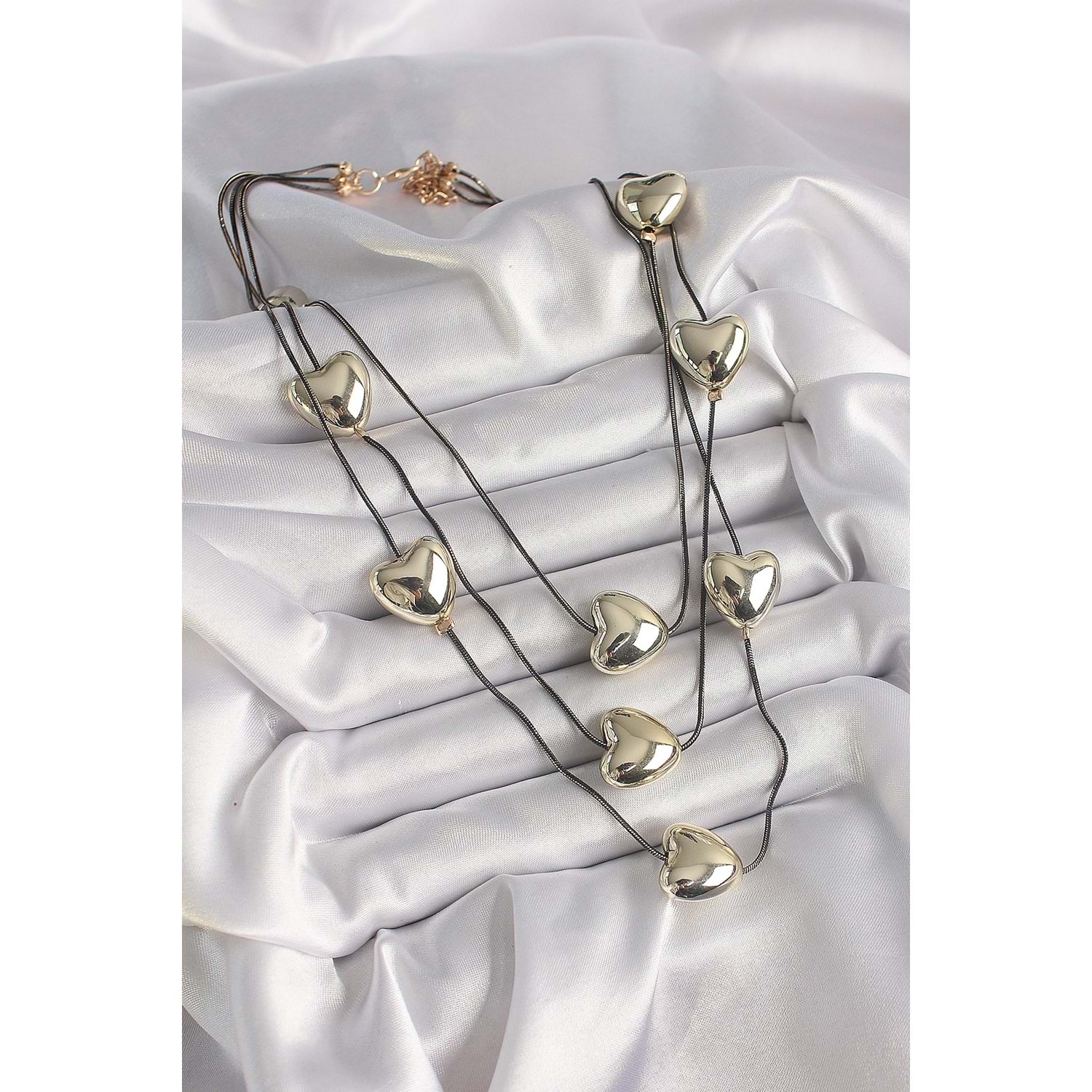 Pirinç Füme Renk Zincir 3D Gold Renk Kalp Model Kadın Kolye