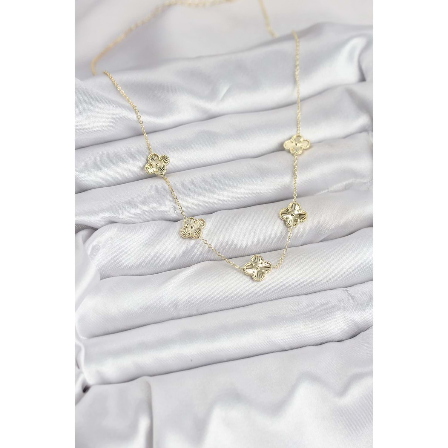 Pirinç Gold Renk Yonca Kadın Kolye