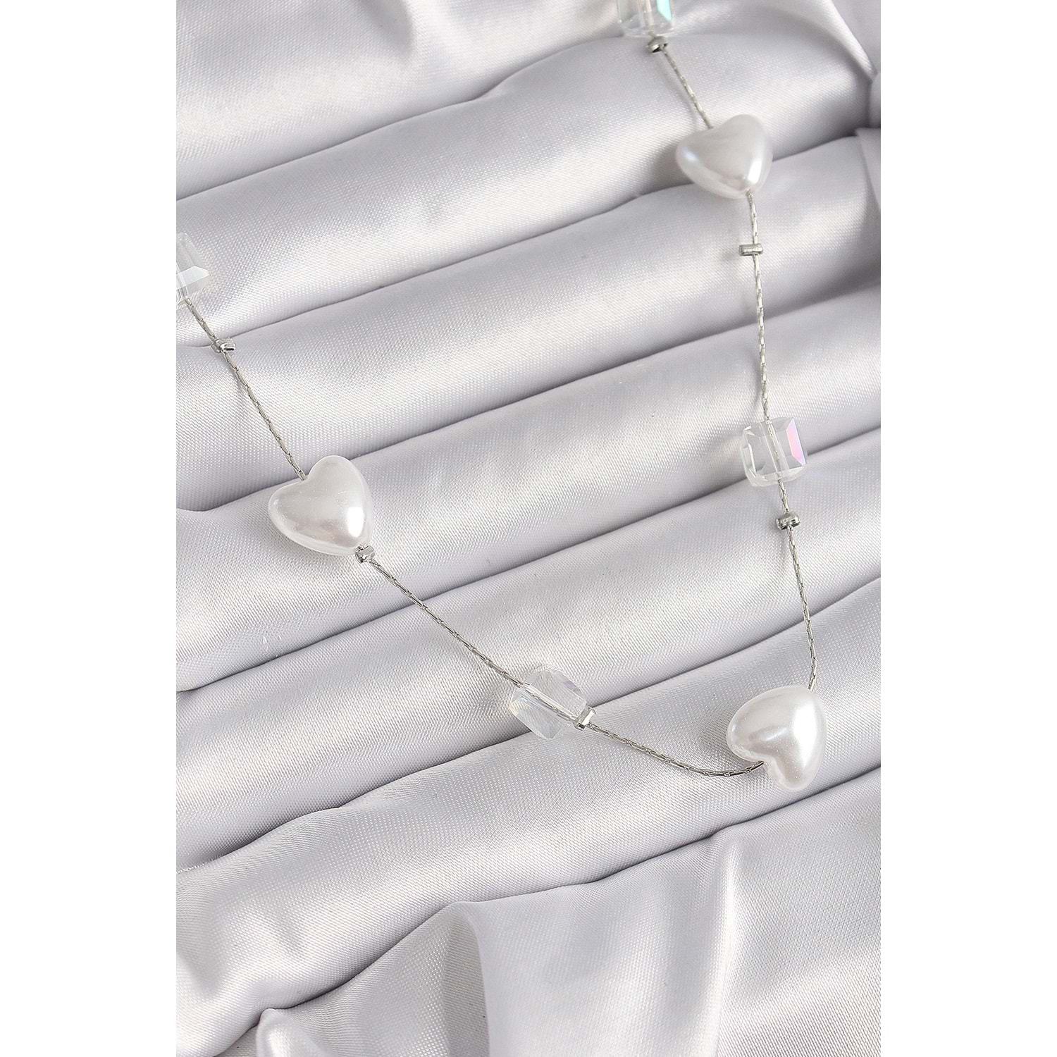 Pirinç Gümüş Renk Beyaz İnci Kalp Model Kadın Kolye