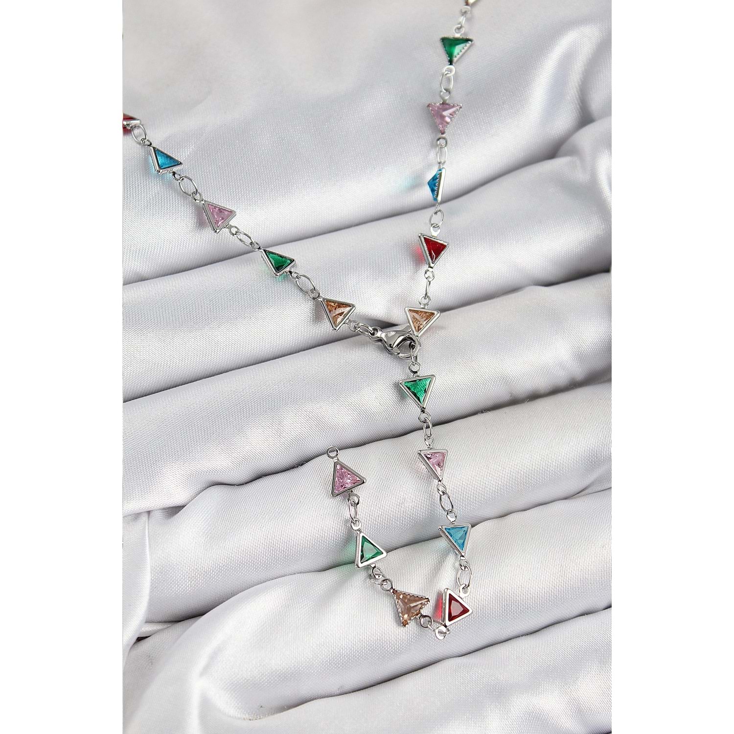 Pirinç Renkli Zirkon Taşlı Üçgen Model Gümüş Renk Kadın Y Kolye