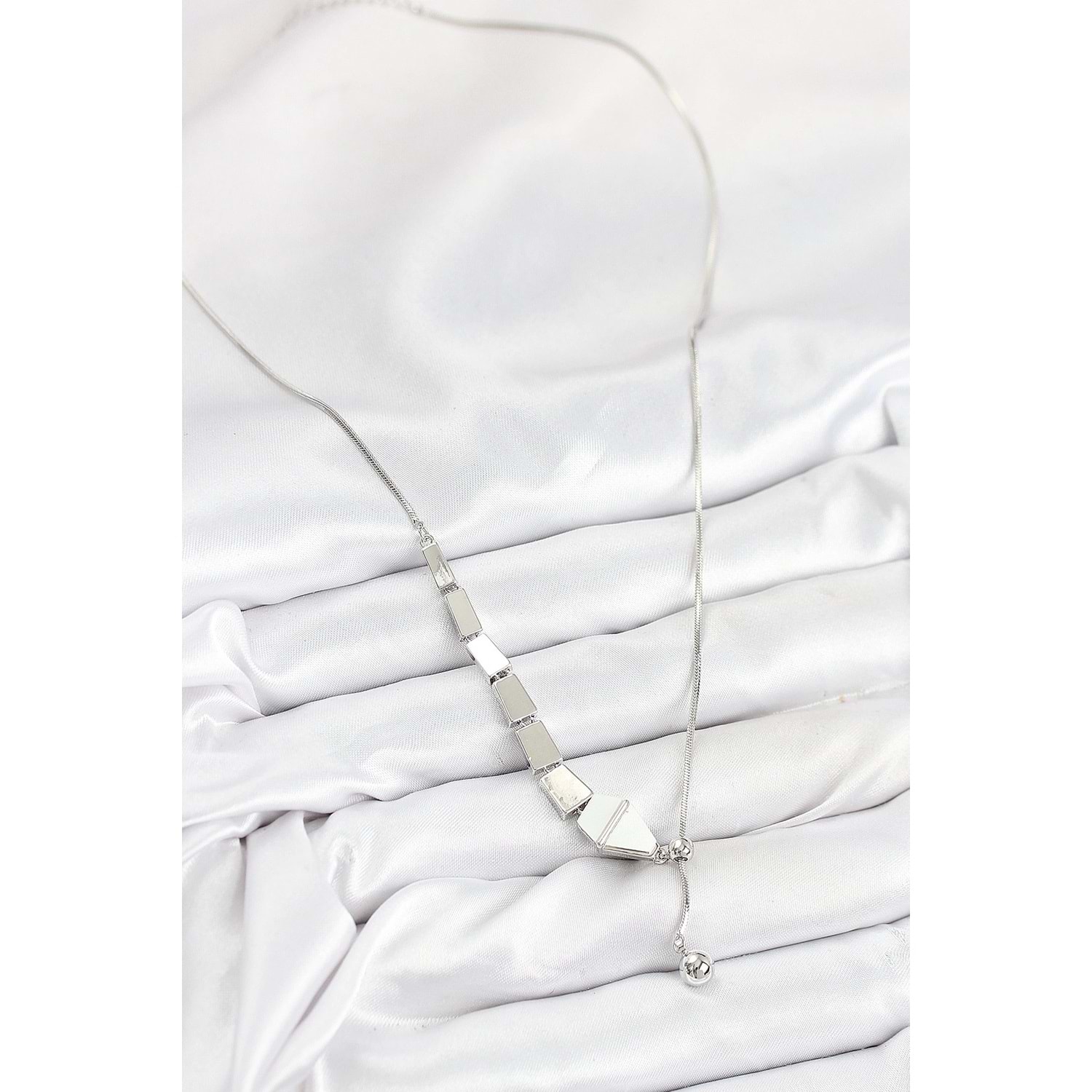 Pirinç Yılan Model Gümüş Renk Asansörlü Kadın Kolye