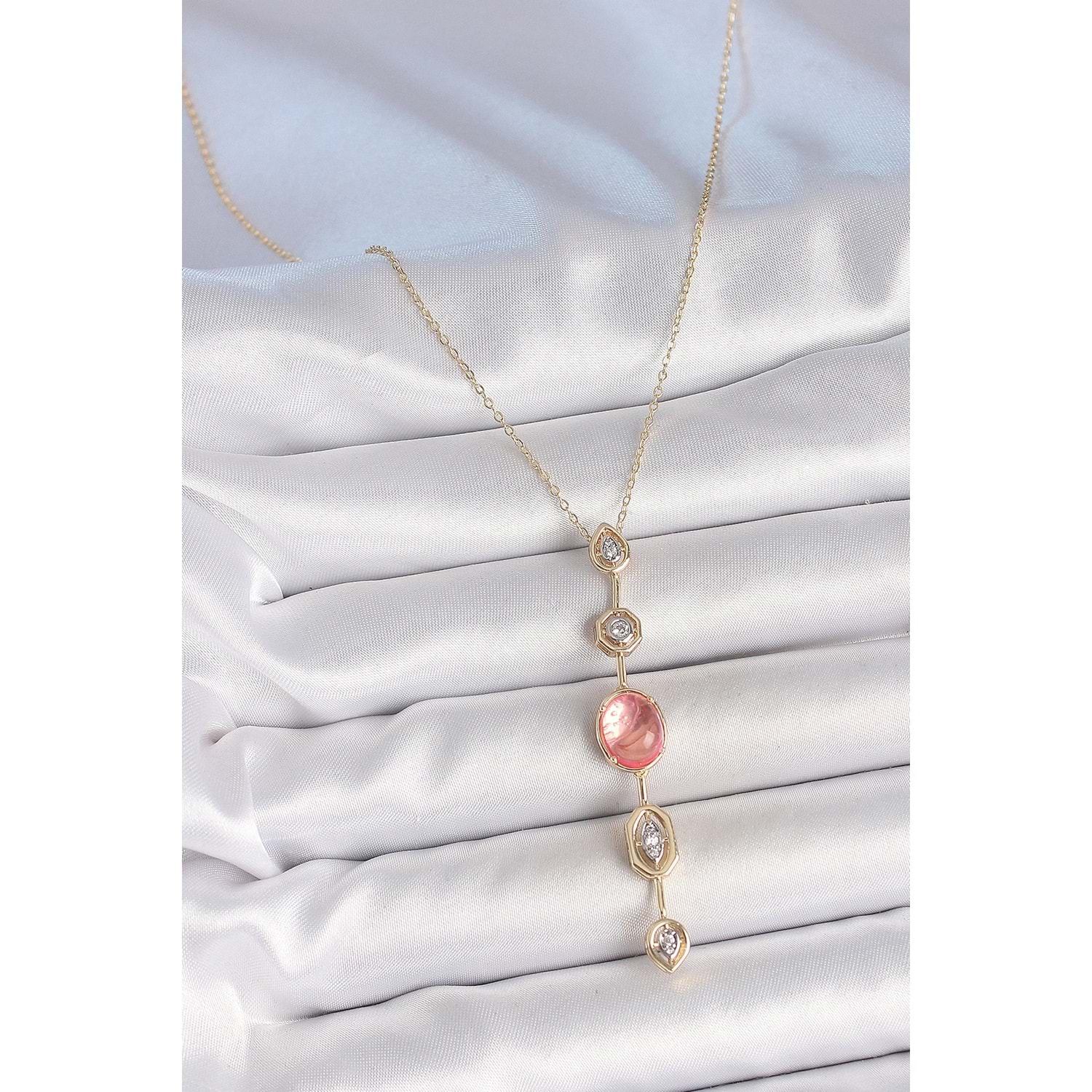 Pirinç Zincir Pembe Gold Renk Zirkon Taşlı Y Kolye