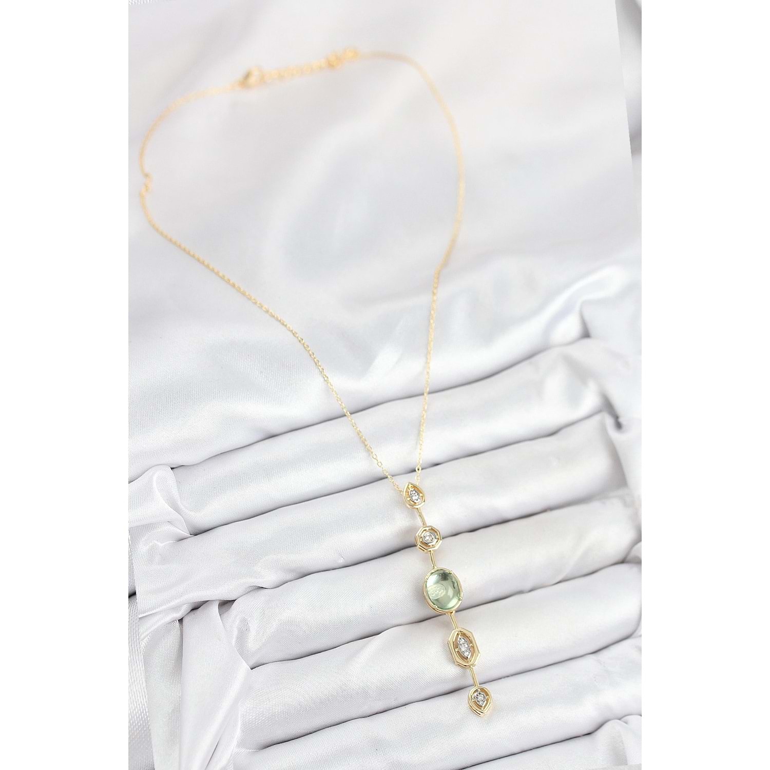 Pirinç Zincir Yeşil Gold Renk Zirkon Taşlı Y Kolye