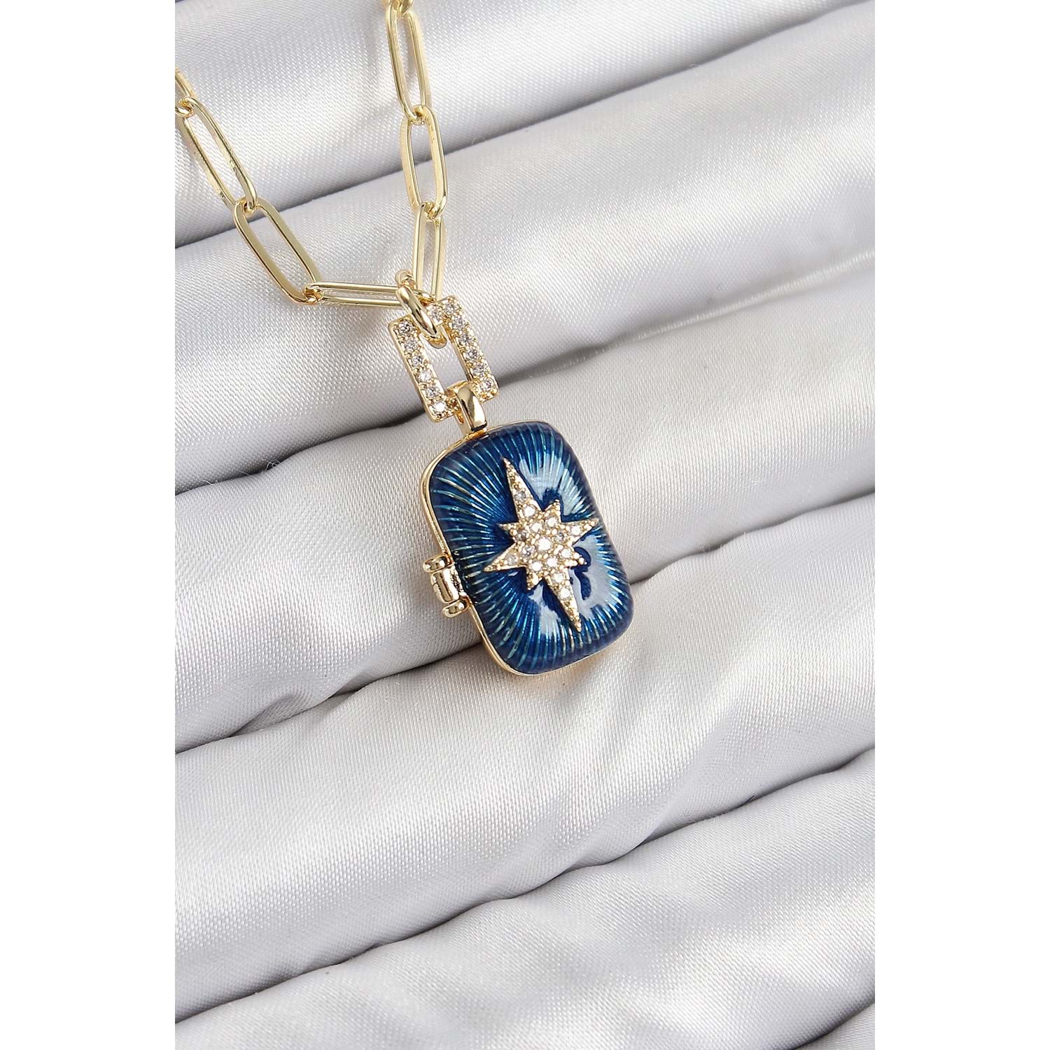 Pirinç Zirkon Taşlı Açılabilir Kutup Yıldızı Model Gold Renk Kadın Kolye