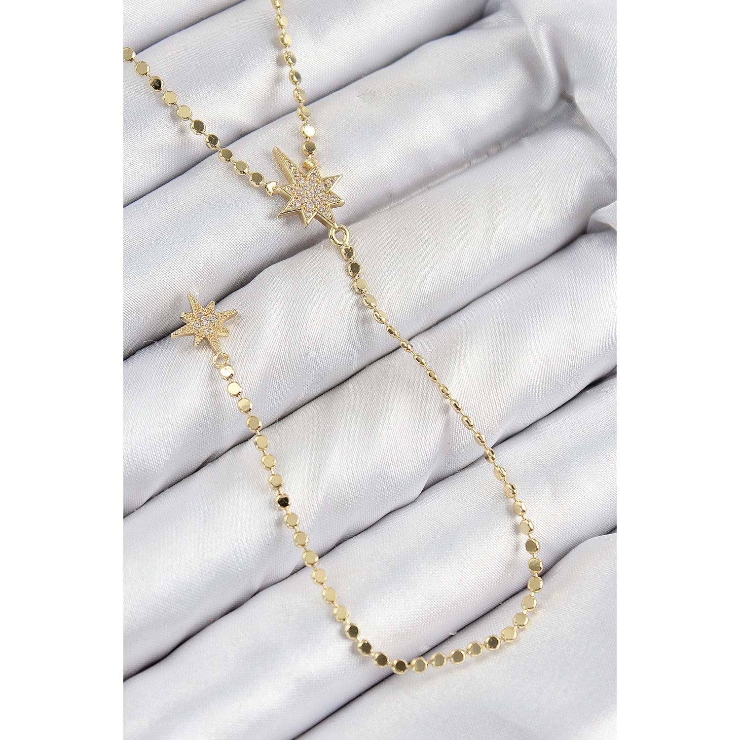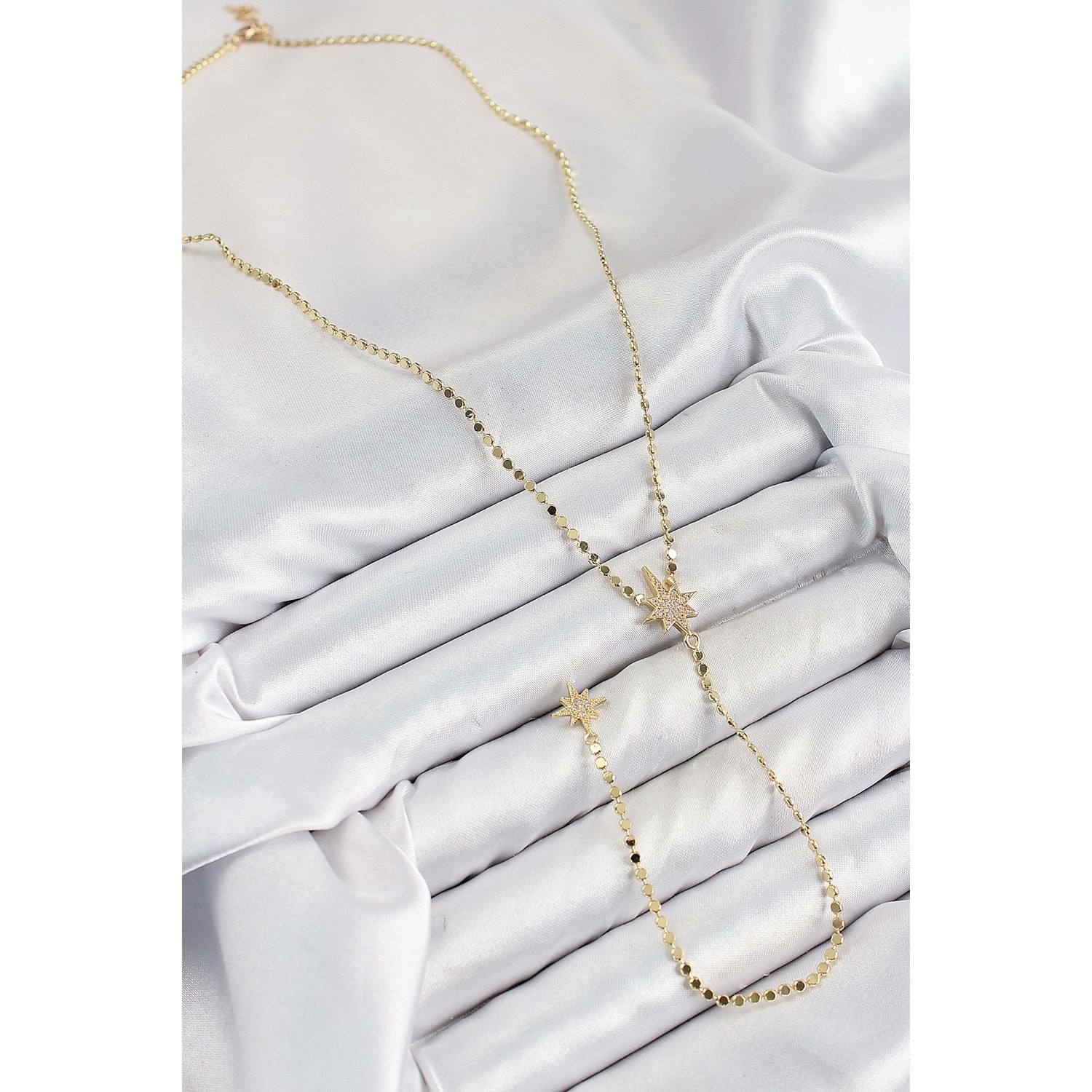 Pirinç Zirkon Taşlı Ezme Zincirli Kutup Yıldızı Model Gold Renk Y Kolye